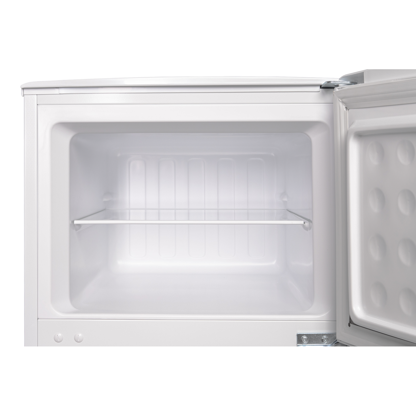 Загальний/корисний об'єм: 159/155 л; Загальний/корисний об'єм холодильної камери: 118/115 л; Загальний/корисний об'єм морозильної камери: 41/40 л; Клас енергоспоживання: А+; Потужність: 85 Вт; Управління: механічне; Система охолодження: статична; Система розморожування: ручна; Морозильна камера: верхня; Кіл-ть полиць в холодильній камері: 2 шт.(скло); Кіл-ть полиць в в морозильній камері: 1 шт.; Перенавішувані двері; Регульовані ніжки; Розмір виробу (ШхВхГ): 50х123х58 см; Колір: білий.