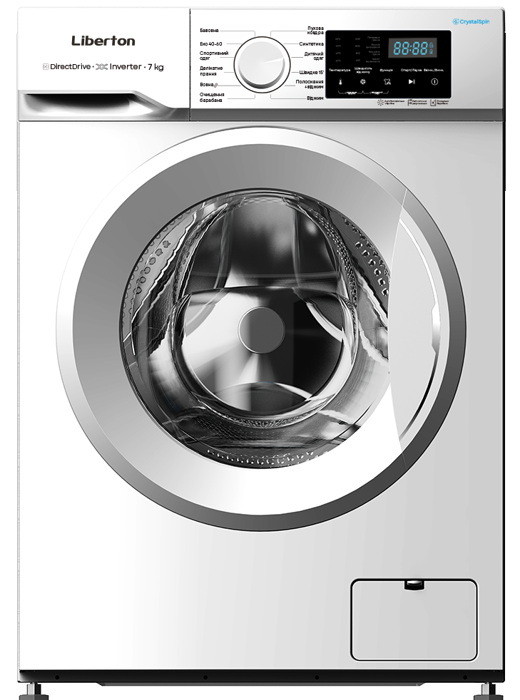 Завантаження, кг: 7; Тип двигуна: інверторний DD; Тип: автомат, фронтальна; Привід: прямий; Макс. швидкість віджиму, об/хв: 1400; Клас енергоспоживання: C; Клас віджиму: С; Дисплей: так; Кількість програм: 12 (Бавовна, Еко 40-60, Спортивний одяг, Вовна, Пухова коврда, Синтетика, Дитячий одяг, Швидке прання 15, Полоскання+Віджим, Віджим, Делікатне, Очистка барабану); Функції: функція пам'яті автоматичний перезапуск, додаткове ополіскування, вибір температури прання, вибір швидкості віджиму, очищення барабану, таймер відстрочки старту, захист від дітей, дозавантаження старт/пауза, контроль дисбалансу, контроль піноутворення, інтелектуальна система прання; Рівень шуму під час прання, дБ: 60; Рівень шуму під час віджимання, дБ: 72; Матеріал корпусу: пластик; Розмір виробу, см: 59,5×85×48; Колір: білий.