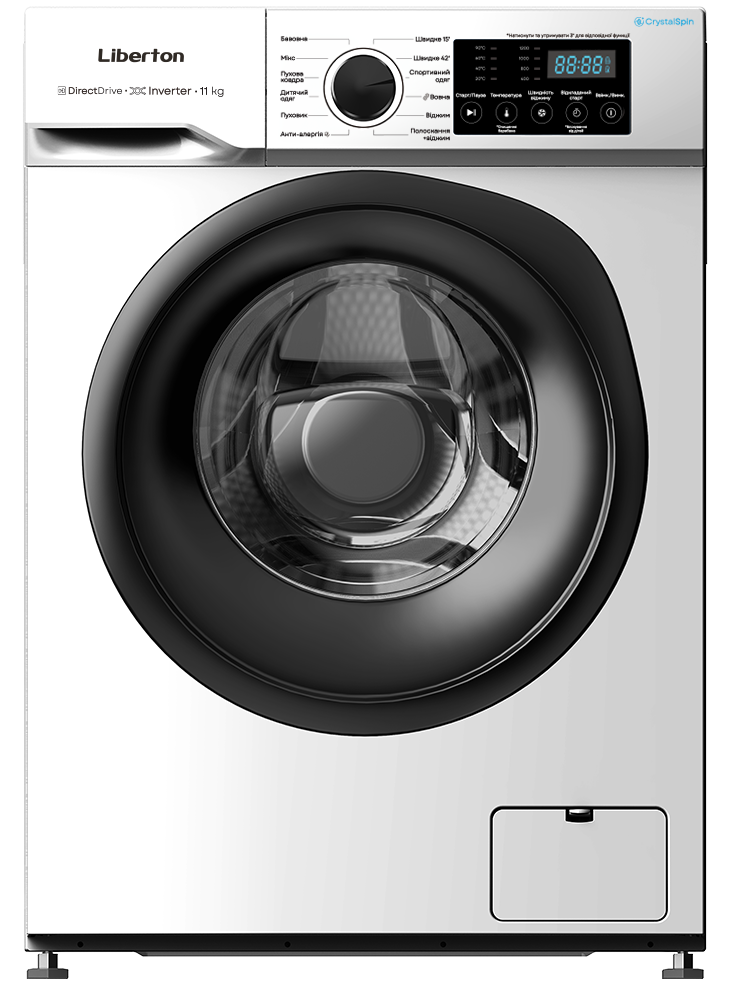 Завантаження, кг: 11; Тип двигуна: інверторний DD; Тип: автомат, фронтальна; Привід: прямий; Макс. швидкість віджиму, об/хв: 1200; Клас енергоспоживання: D; Клас віджиму: B; Дисплей: так; Кількість програм: 12 (Бавовна, Спортивний одяг, Вовна, Пухова коврда, Дитячий одяг, Швидке прання 15, Полоскання+Віджим, Віджим, Делікатне прання, Мікс, Швидке прання 42, Анти-алергія, Пуховик) ; Функції: функція пам'яті автоматичний перезапуск, додаткове ополіскування, вибір температури прання, вибір швидкості віджиму, очищення барабану, таймер відстрочки старту, захист від дітей, дозавантаження старт/пауза, контроль дисбалансу, контроль піноутворення, інтелектуальна система прання; Рівень шуму під час прання, дБ: 52; Рівень шуму під час віджимання, дБ: 68; Матеріал корпусу: пластик; Розмір виробу, см: 59,5×85×56; Колір: білий.