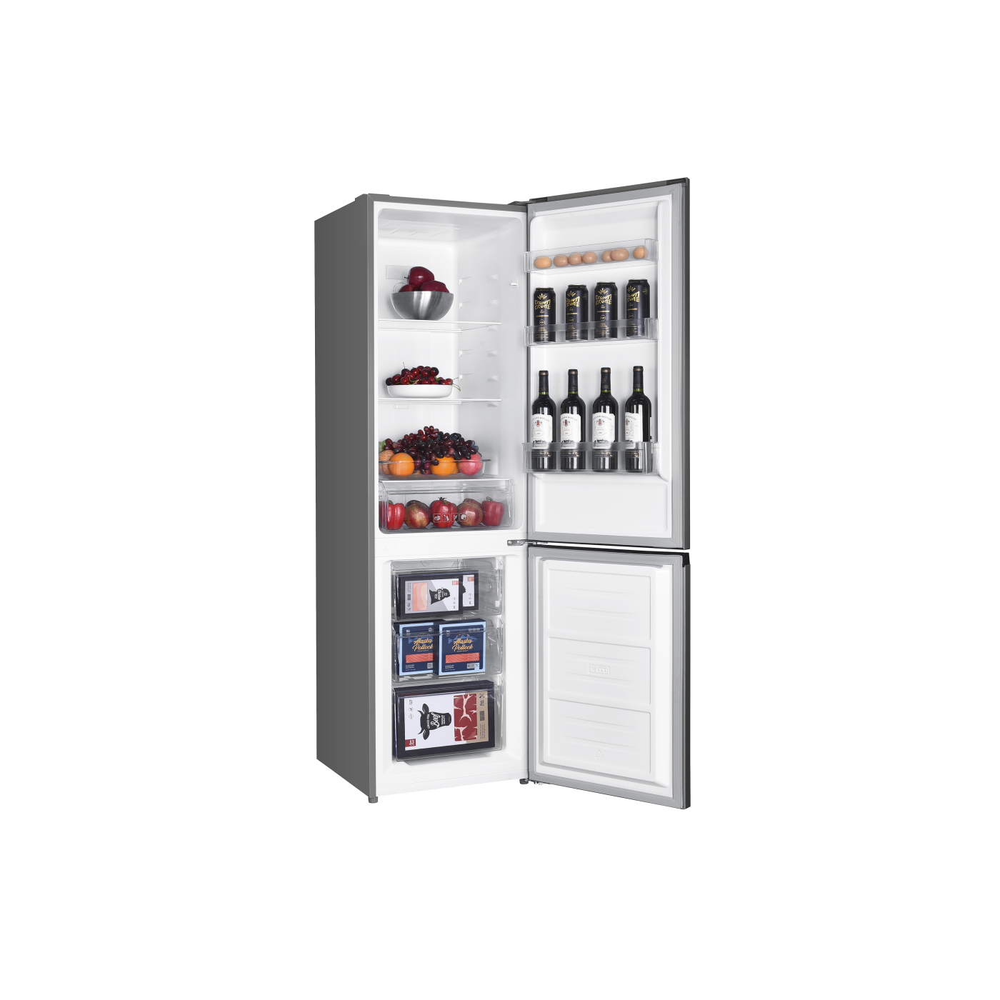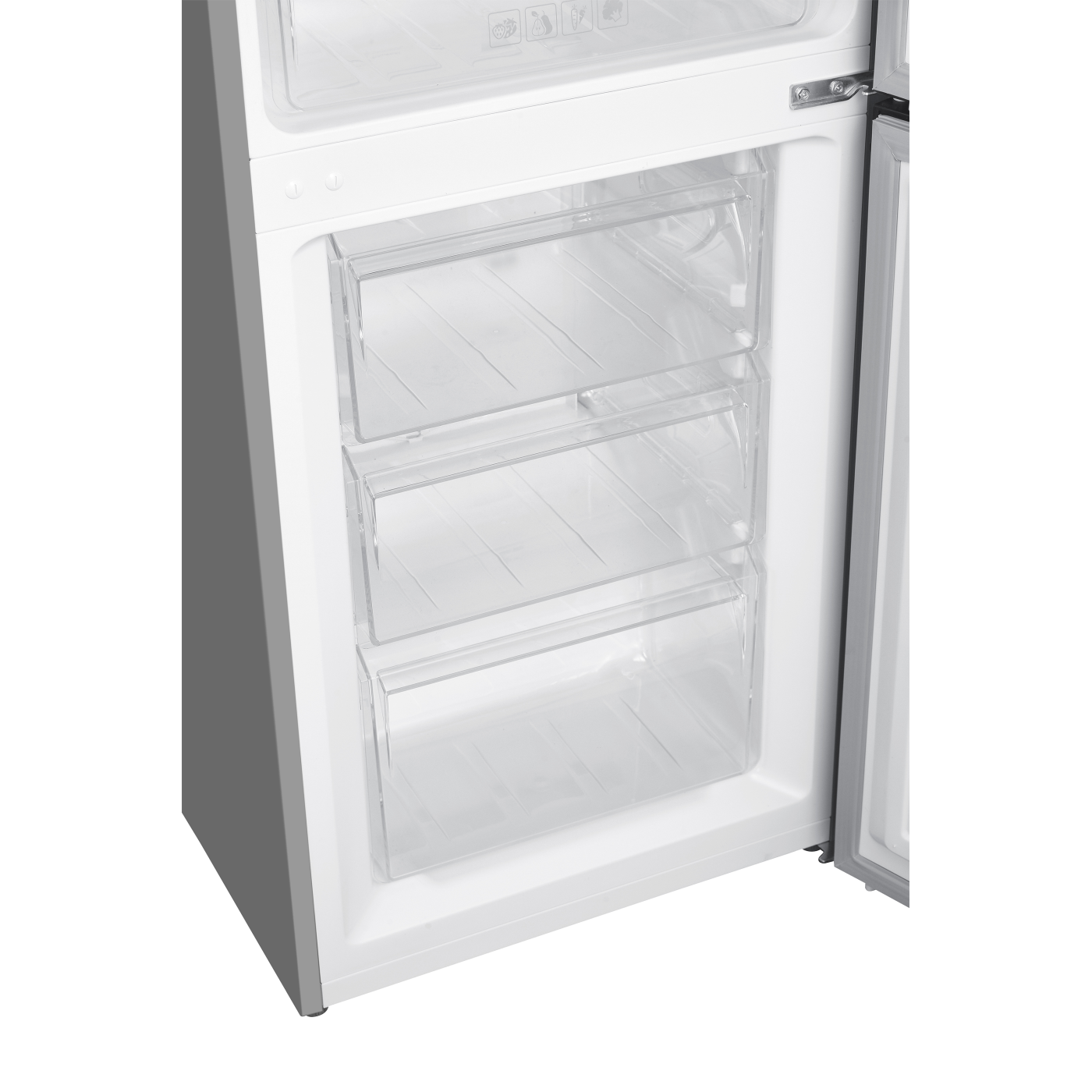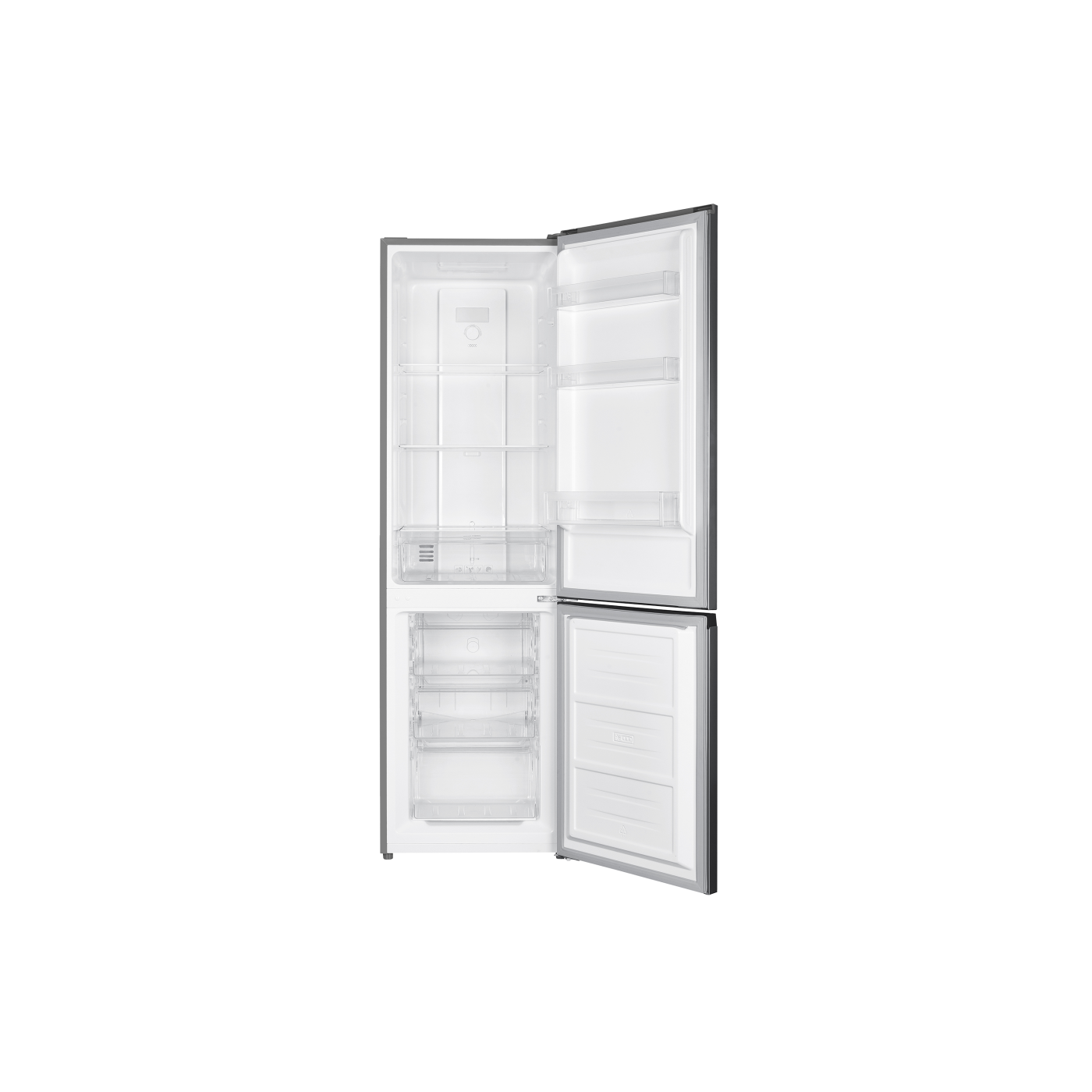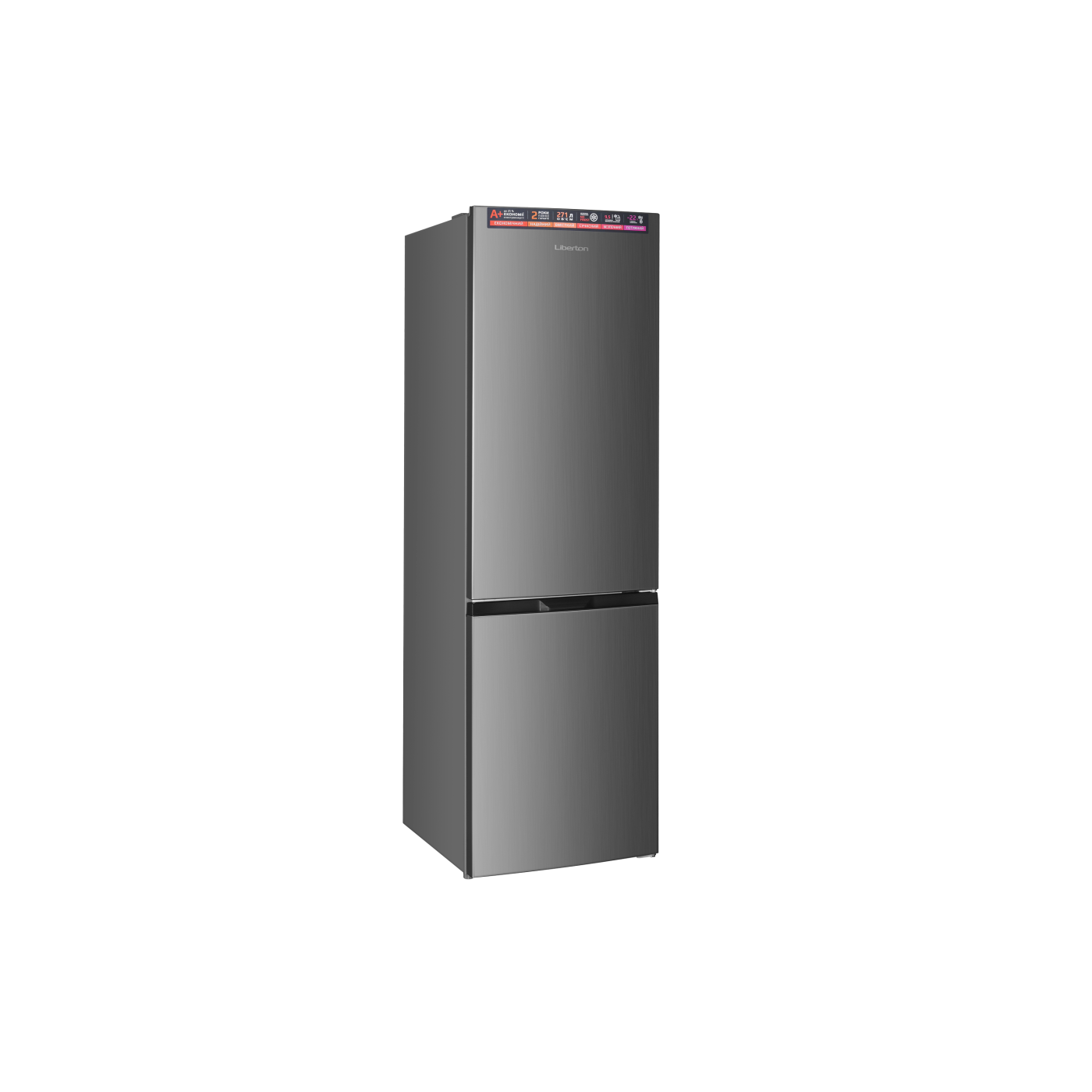 Загальний/корисний об'єм: 271/253 л; Загальний/корисний об'єм холодильної камери: 191/182 л; Загальний/корисний об'єм морозильної камери: 80/71 л; Клас енергоспоживання А +; Потужність: 90 Вт; Управління: механічне; Система розморожування: No Frost; Морозильна камера: нижня; Кіль-ть полиць в холодильній камері: 3 шт.(скло); Кіл-ть ящиків в морозильній камері: 3 шт.; Перенавішувані двері; Регульовані ніжки; Розмір виробу: 55х60х180 см; Колір: сірий+нержавіюча сталь.