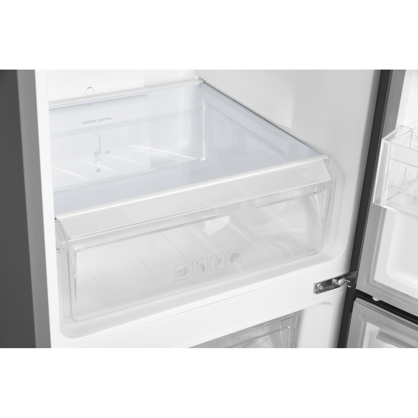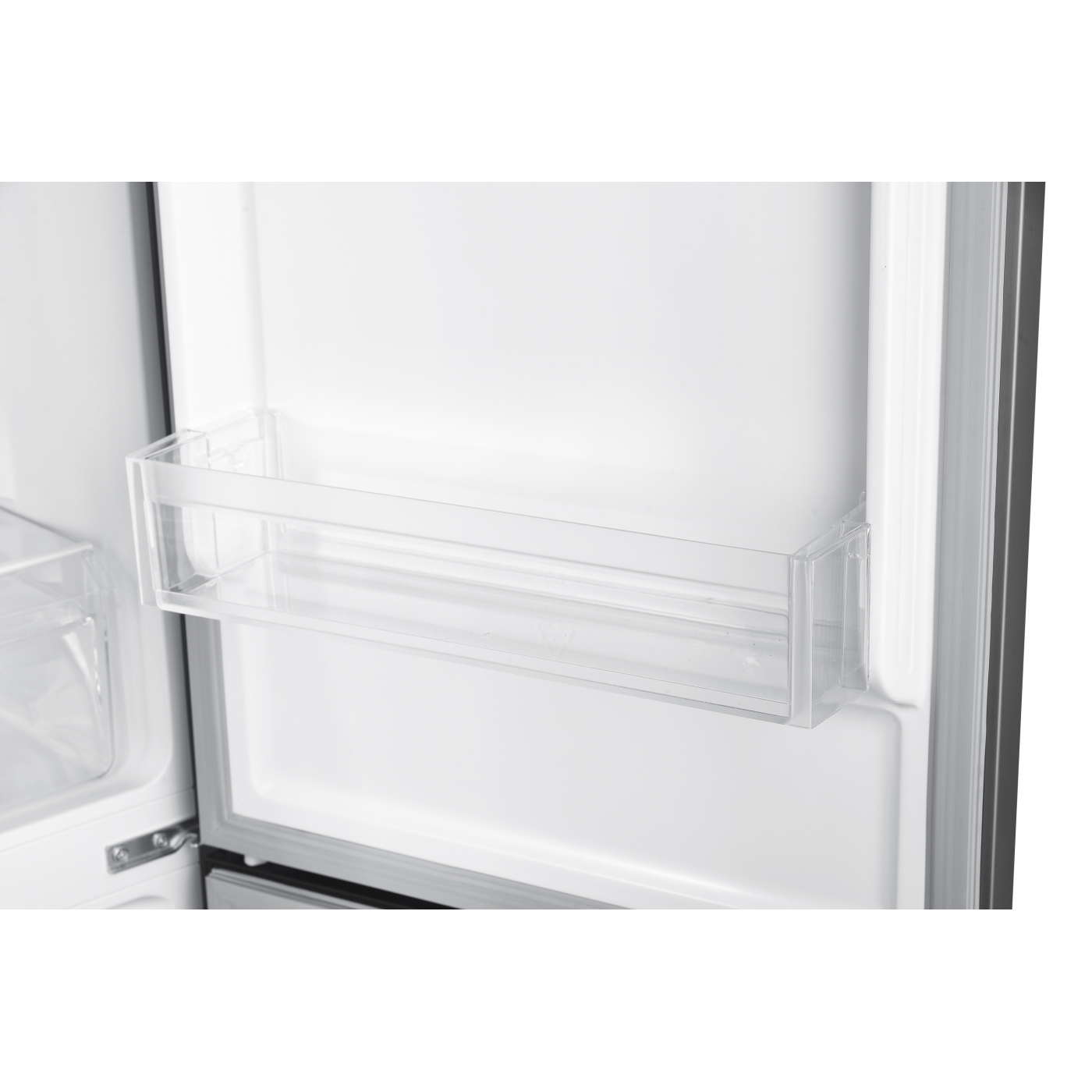 полиці із загартованого скла - 3 шт, пластикові полиці на дверцятах - 3 шт, пластиковий контейнер для овочей -1 шт, пластикові контейнери у мороз. камері - 3 шт