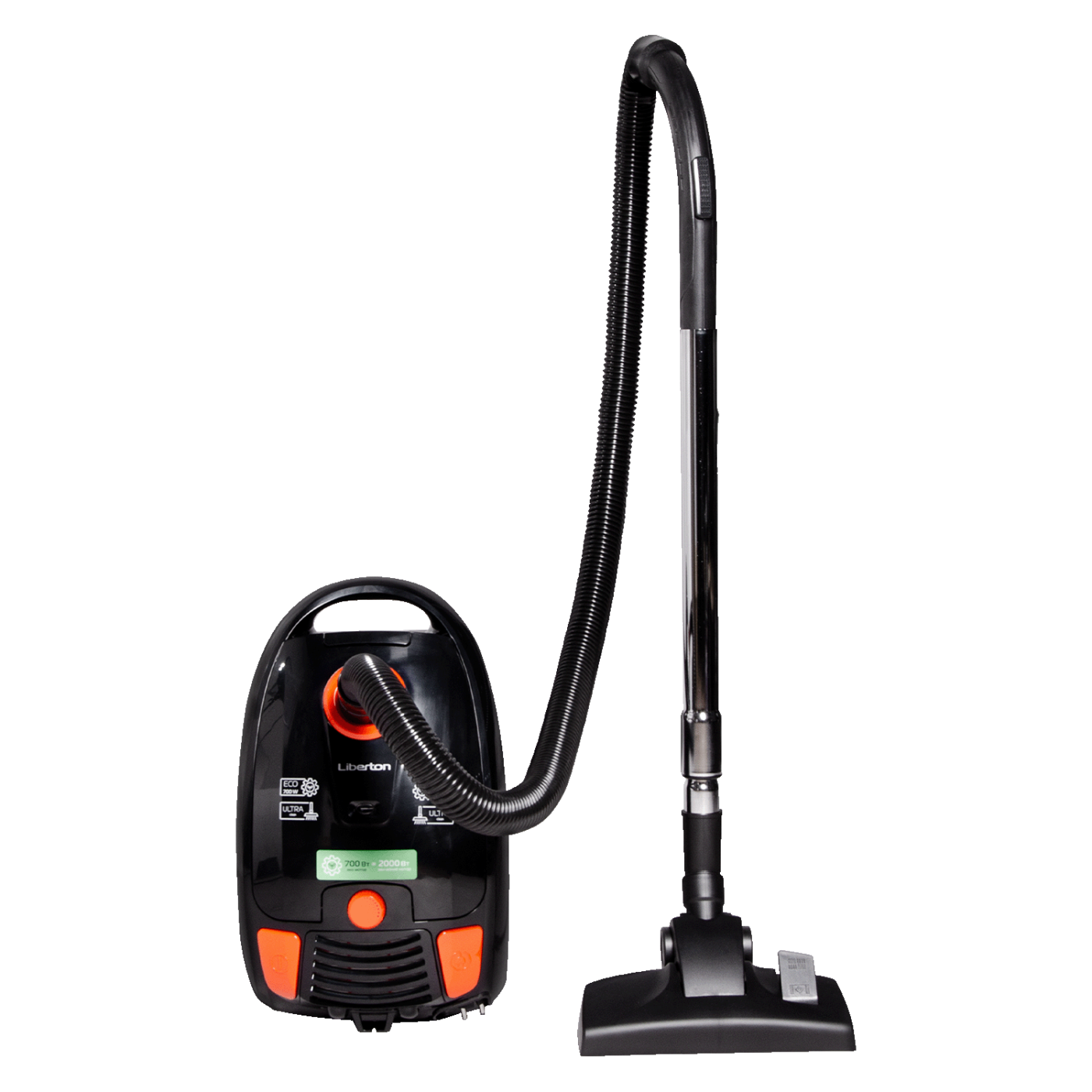 Потужність: 700 Вт; Тип: мішковий; Об'єм пилозбірника: 3,5 л; Комплектація: телескопічна хромована трубка, насадки підлога/килим/щілина, шнур 5,2 м; Фільтр: HEPA, синтетична губка; Опції: поворот шланга на 360 градусів, регулятор потужності; Розмір виробу: 43,8х26,8х24,5 см; Колір: чорний.