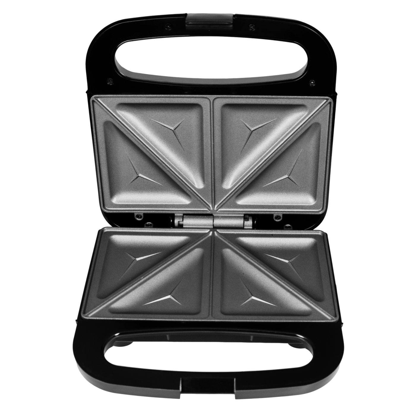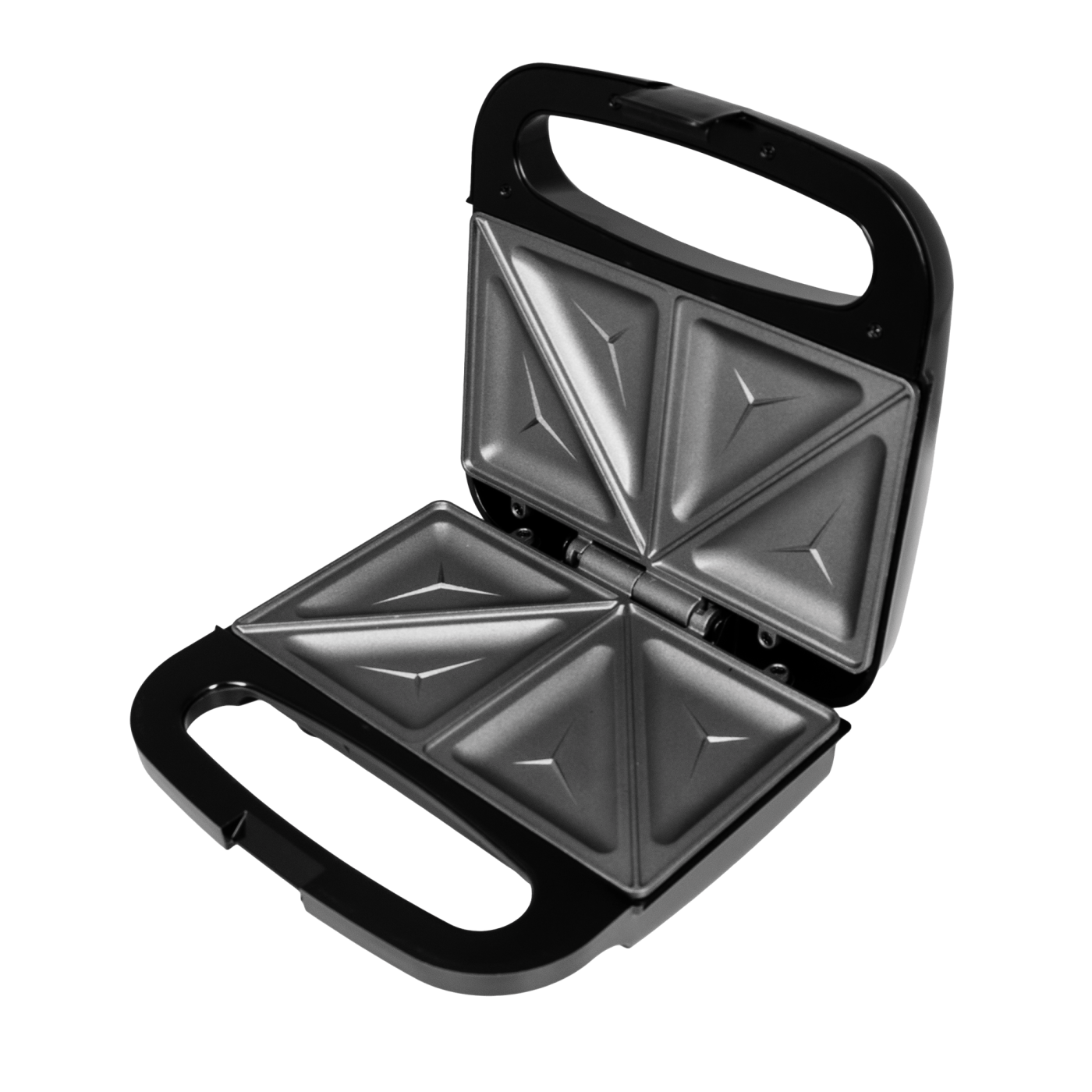 Потужність: 750 Вт; Пластина: трикутні сендвічі (4 шт.); Індикатор живлення і готовності їжі; Автоконтроль температури; Покриття пластин: антипригарне; Розмір робочої поверхні: 21,5х12 см; Матеріал корпусу: бакеліт; Розмір виробу:22,2х22,8х8,8 см; Колір: чорний.