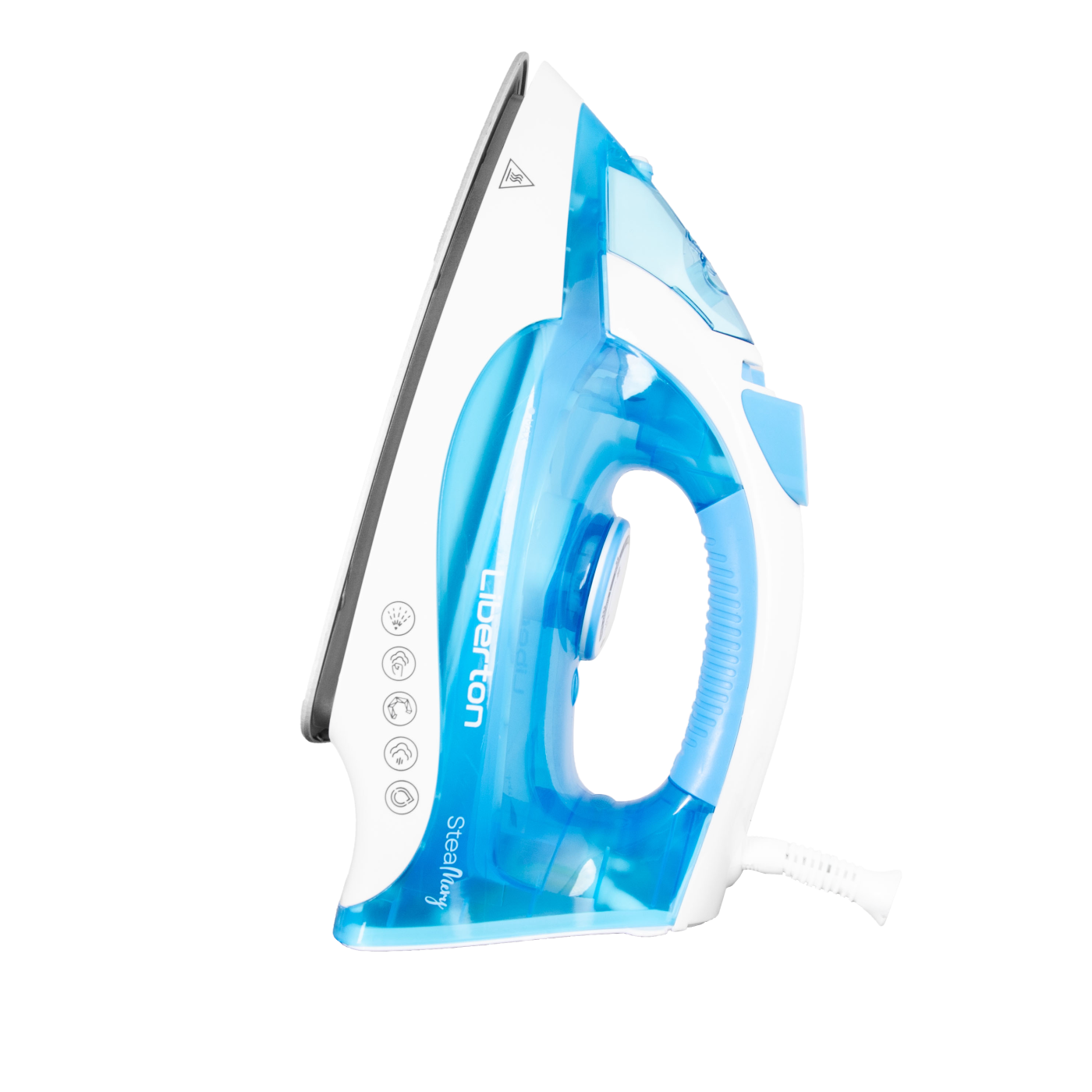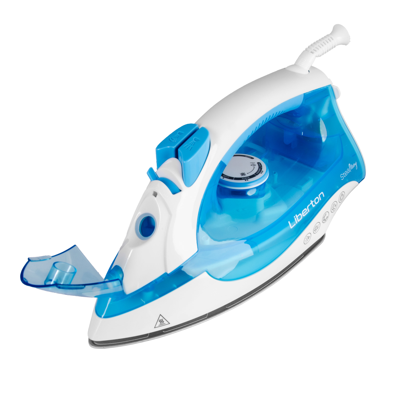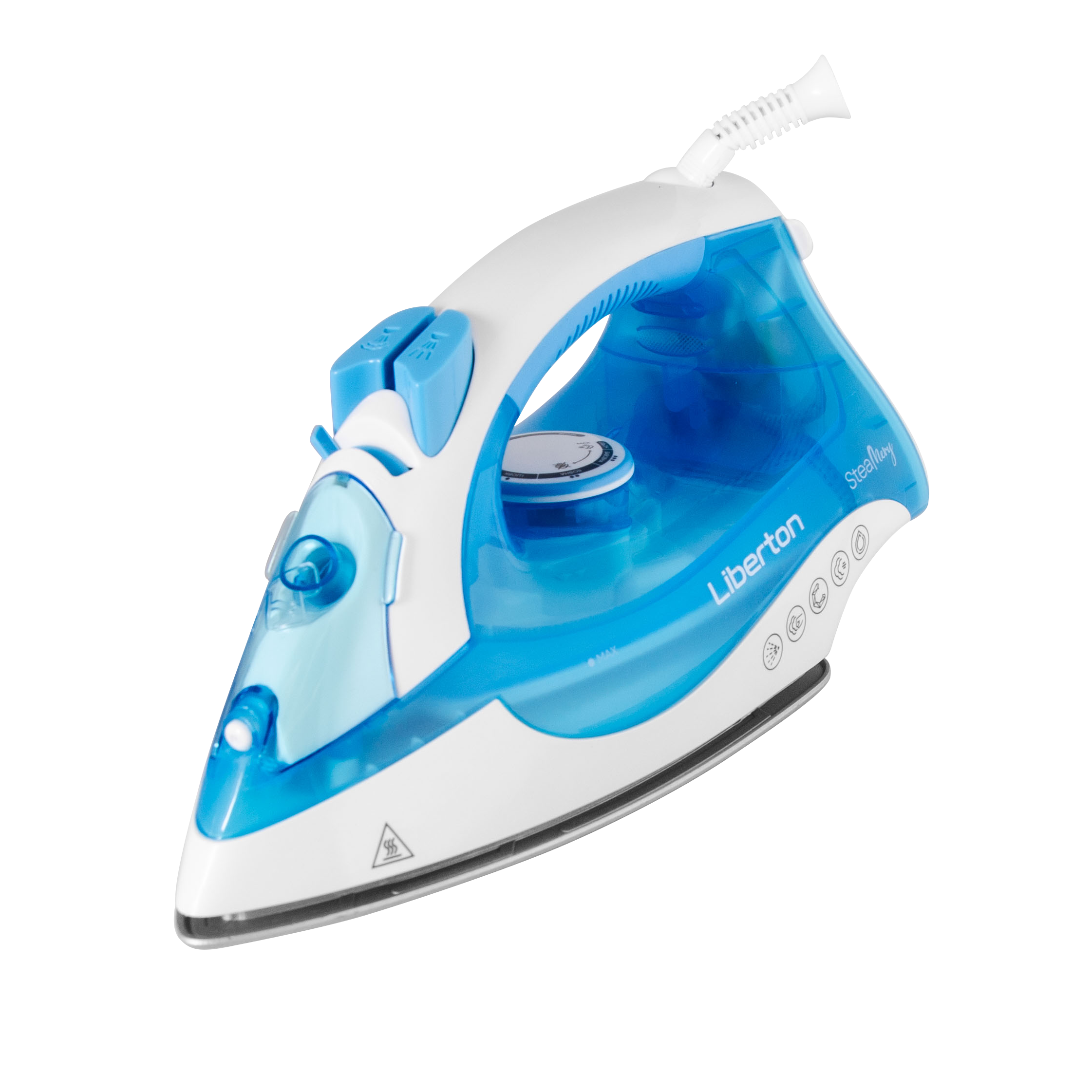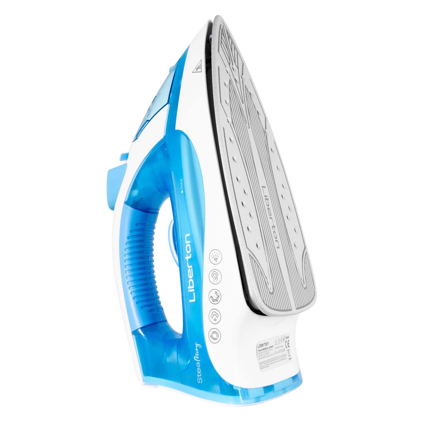 Потужність: 2000 Вт; Матеріал підошви: кераміка; Відпарювання: вертикальний пар, паровий носик, паровий удар, постійний пар, сухе прасування; Потужність постійного пара: 20-25 г/хв; Потужність парового удару: 90 г/хв; Об'єм резервуара для води: 250 мл; Додаткові функції: спрей, функція самоочищення; Шарнірне кріплення шнура 360°; Мірний стакан; Довжина шнура: 2 м; Розмір підошви: 22,0x11,6 cм; Розмір виробу: 27,5х14,5х11,6 см; Матеріал корпусу: пластик; Колір: білий+блакитний.