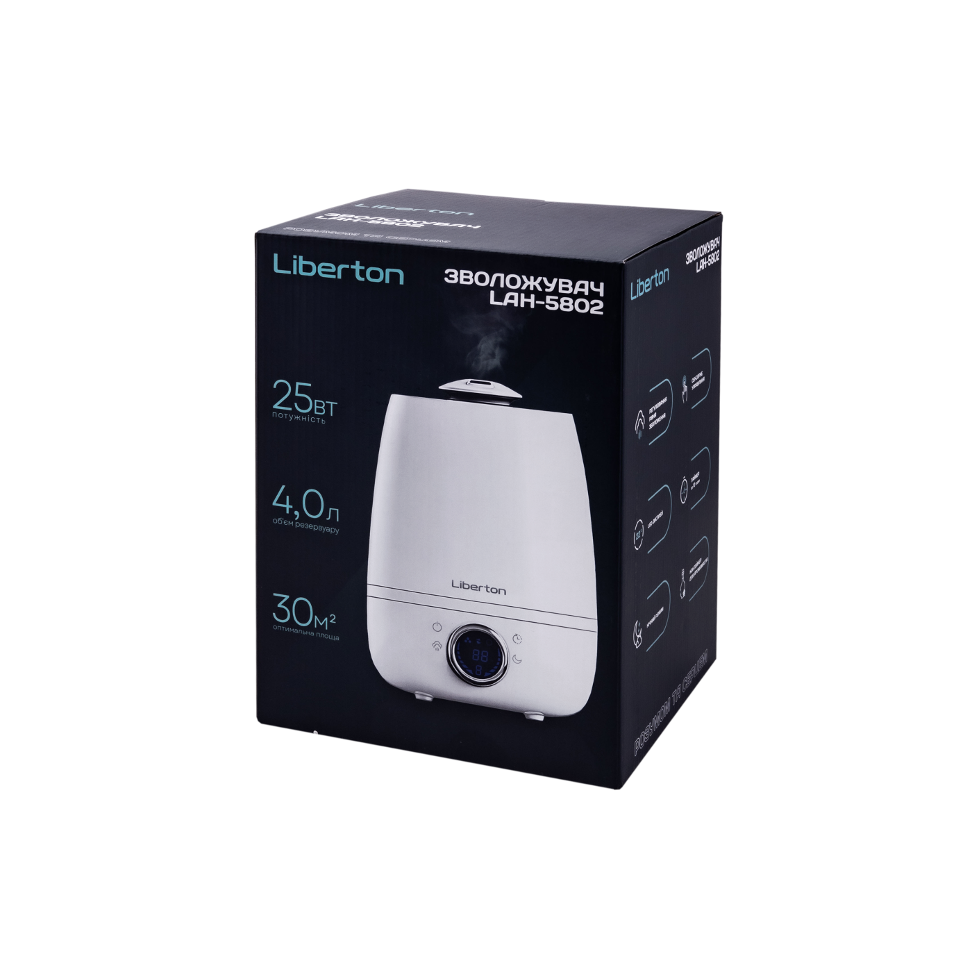 Опції: ароматизація, регулювання рівня зволоження, таймер, нічний режим, автовідключення без води;