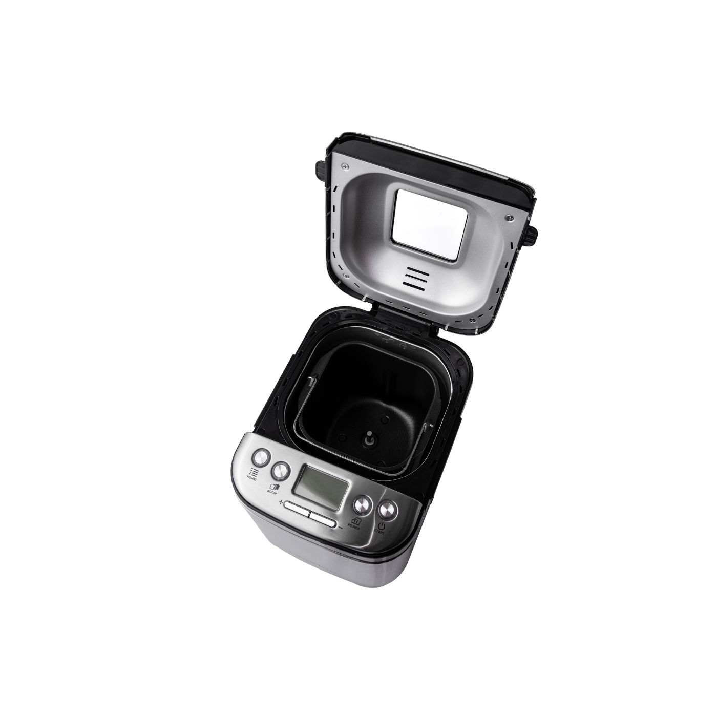 Потужність: 600 Вт; Об'єм випічки: 450/750 г; Кількість програм: 12; Форма випічки: прямокутна; Додаткові функції: підтримка температури, відстрочка старту, 3 рівня запікання скоринки, звуковий сигнал; Комплектація: форма з антипригарним покриттям, мірний стакан, мірна ложка, 1 тістоміс, гачок; Матеріал корпусу: нержавіюча сталь; Розмір виробу: 27,4х20,4х27,2 см; Колір: нерж.