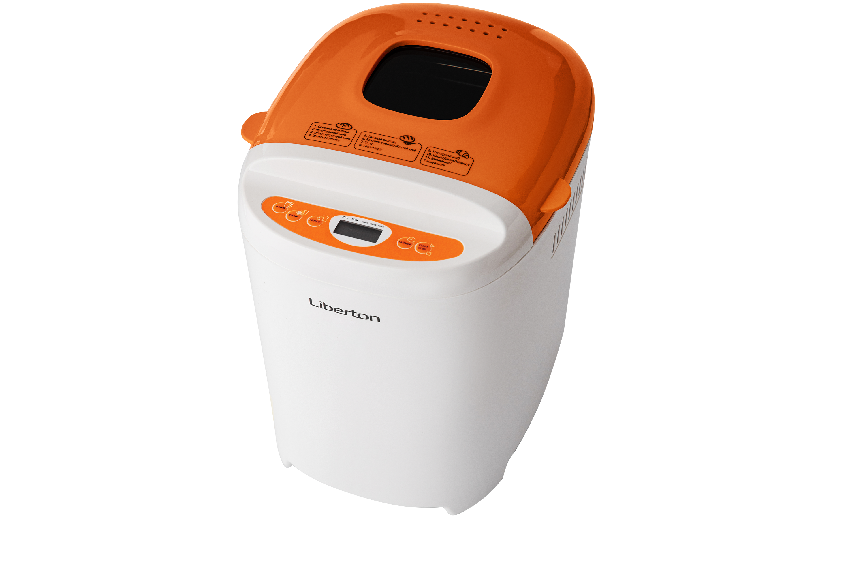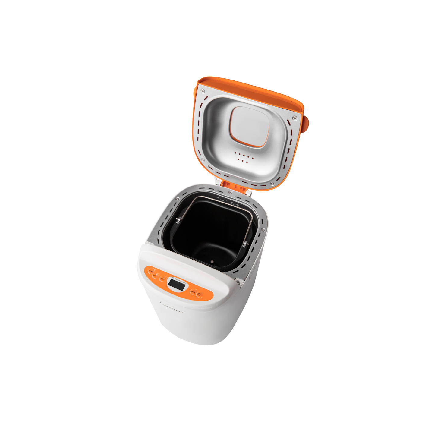 Потужність: 550 Вт; Об'єм випічки: 700/900 г; Кількість програм: 11; Форма випічки: прямокутна; Додаткові функції: підтримка температури, відстрочка старту, 3 рівня запікання скоринки, звуковий сигнал; Комплектація: форма з антипригарним покриттям, мірний стакан, мірна ложка, 1 тістоміс, гачок; Матеріал корпусу: пластик; Розмір виробу: 29,7х21,8х29,2 см; Колір: білий+помаранчевий.