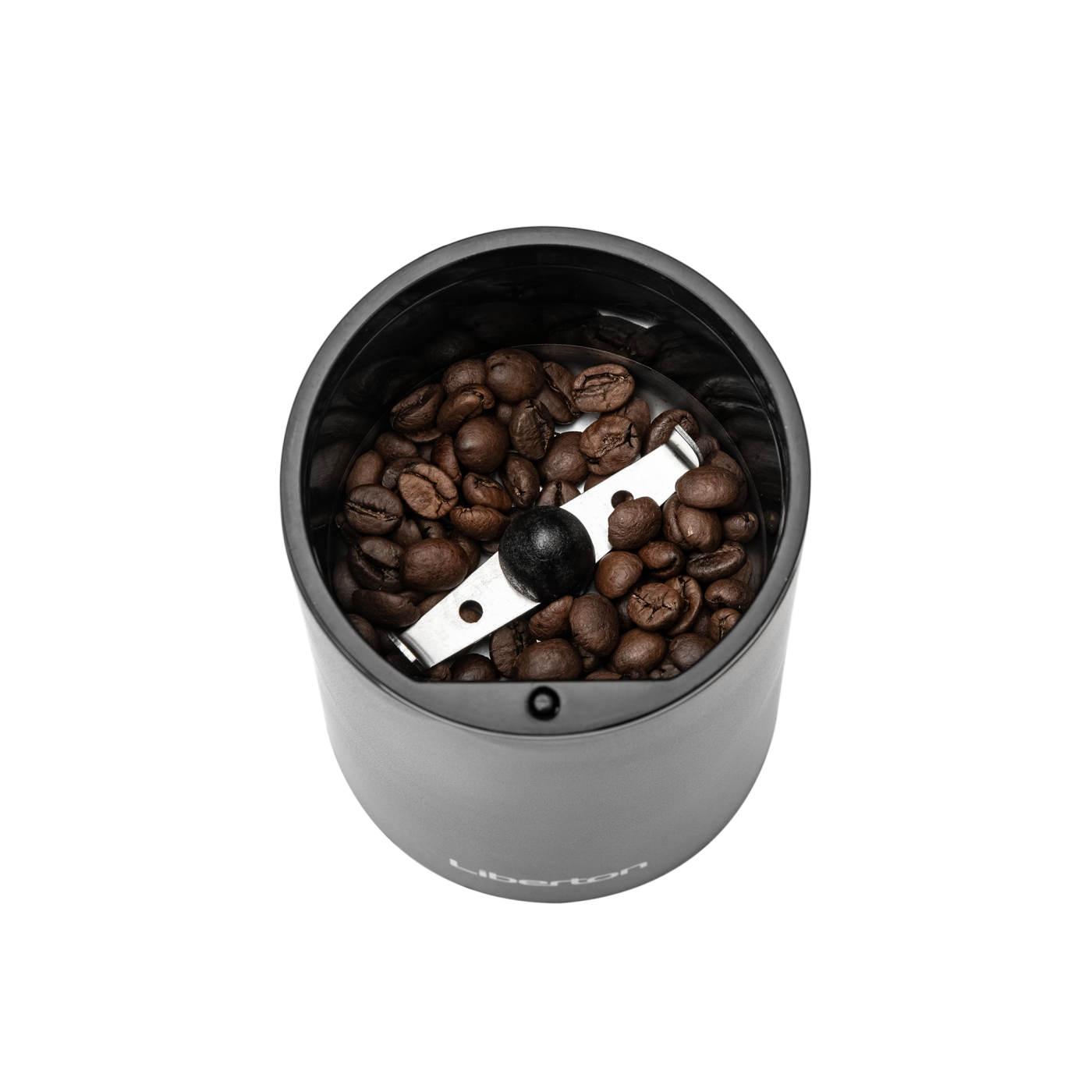 Потужність: 150 Вт; Місткість контейнера для зерен: 60 г; Імпульсний режим; Контейнер з нержавіючої сталі; Ударний ніж з нержавіючої сталі; Відсік для зберігання шнура; Матеріал корпусу: пластик; Розмір виробу: 8,3х8,3х16,5 см; Колір: чорний.