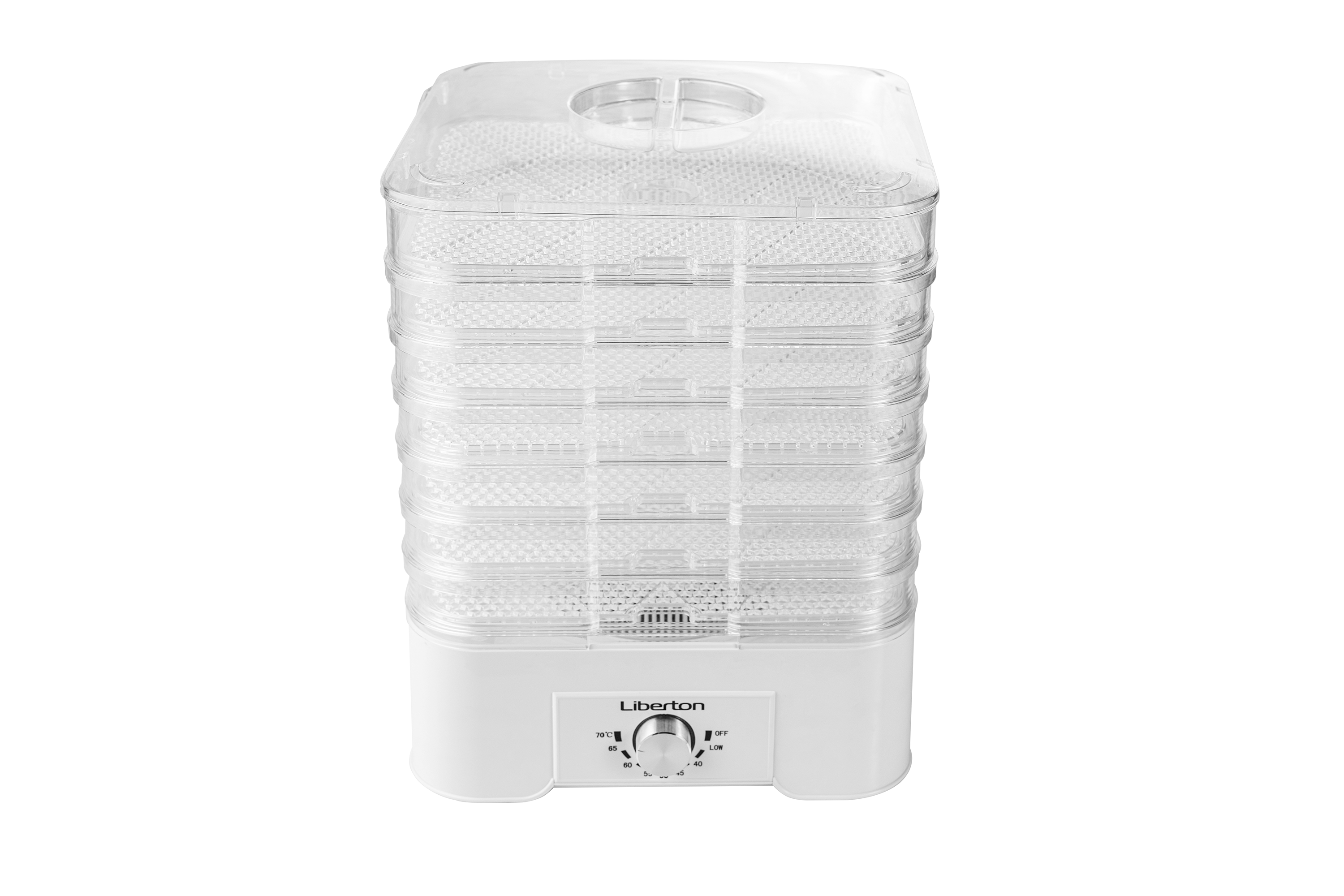 Об'єм, л: 21; Кількість лотків, шт.: 7; Площа сушіння, м.кв.: 0,7; Потужність, Вт: 520; Форма: квадратна; Вертикальне сушіння: так; Регулювання висоти: так; Висота ярусу, см: 3; Розмір піддону, см: 31,5х31,5; Тип: конвективний; Матеріал корпусу: харчовий пластик; Розмір виробу, см: 33х33х39,5; Колір: білий.