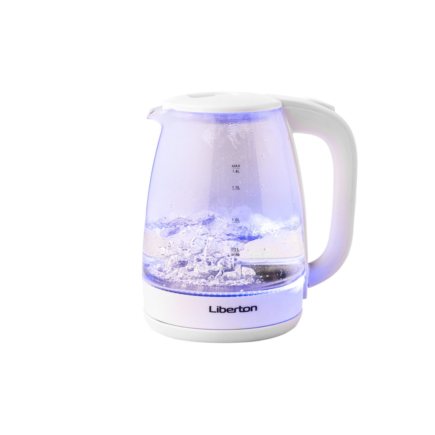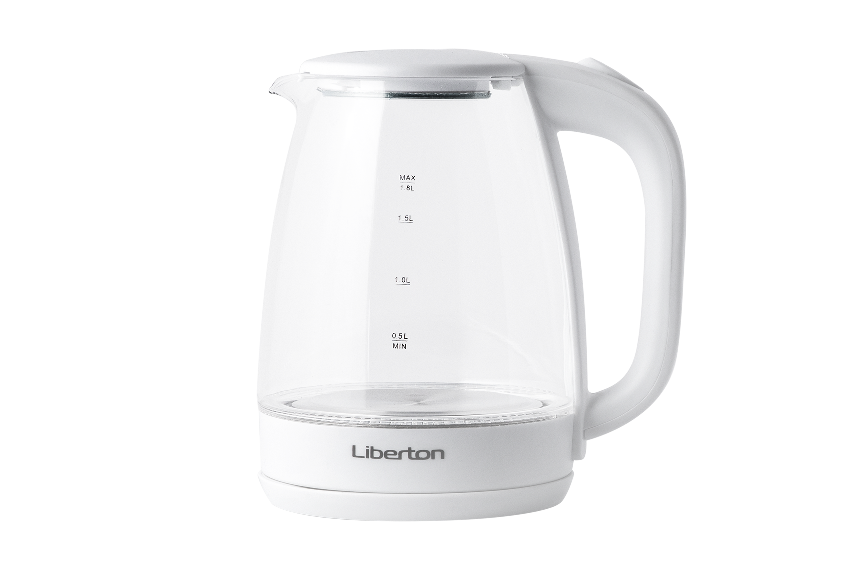Потужність: 1500 Вт; Об'єм: 1,8 л; Нагрівальний елемент: диск з нержавіючої сталі; Комплектація: поворотна база на 360 град., автовідключення, шкала рівня води, індикатор роботи, мідний кабель живлення; Розмір виробу: 20,5х16,3х23 см; Матеріал корпусу: скло+пластик; Колір: білий.