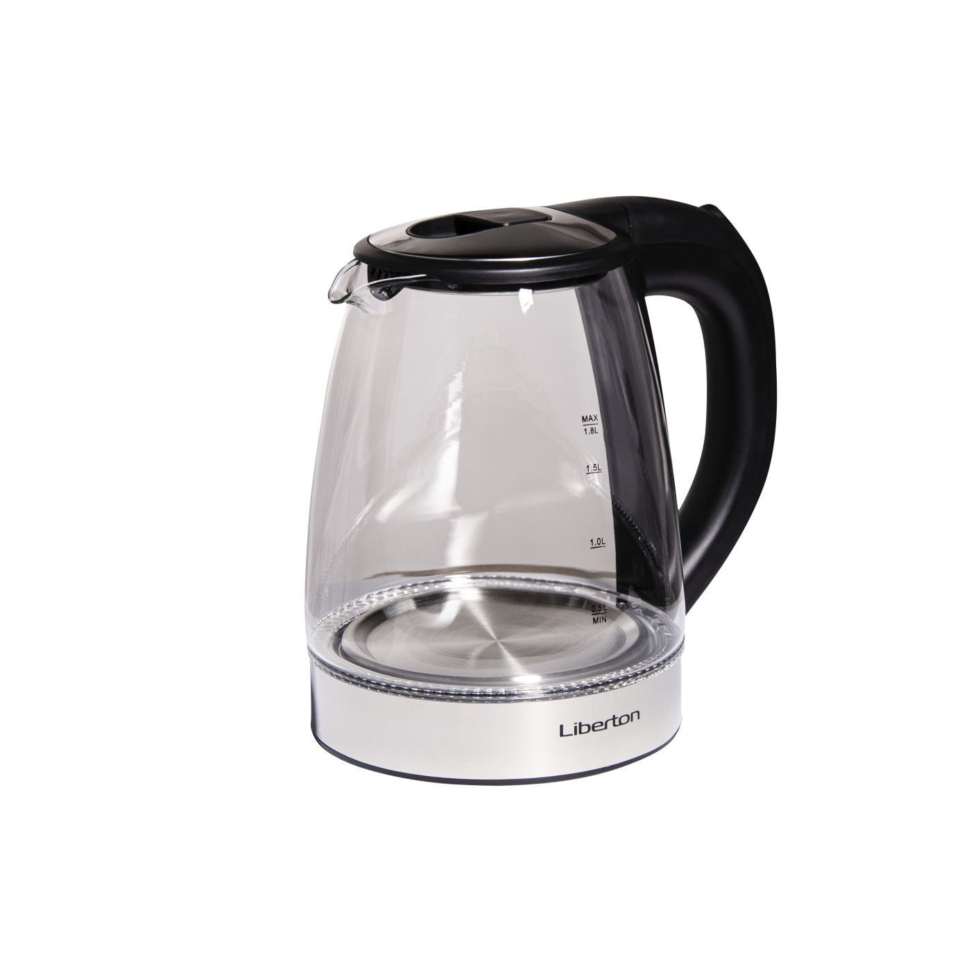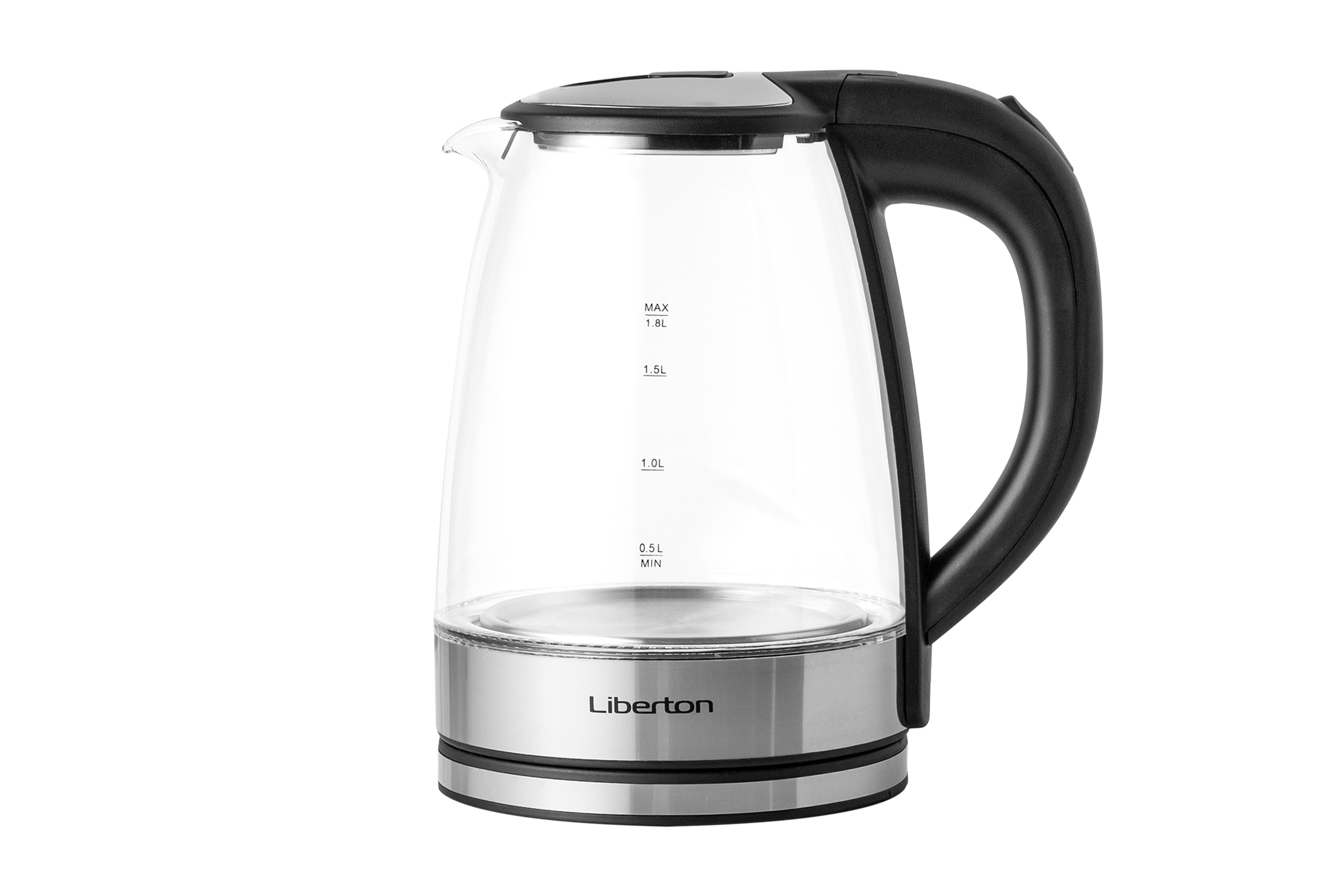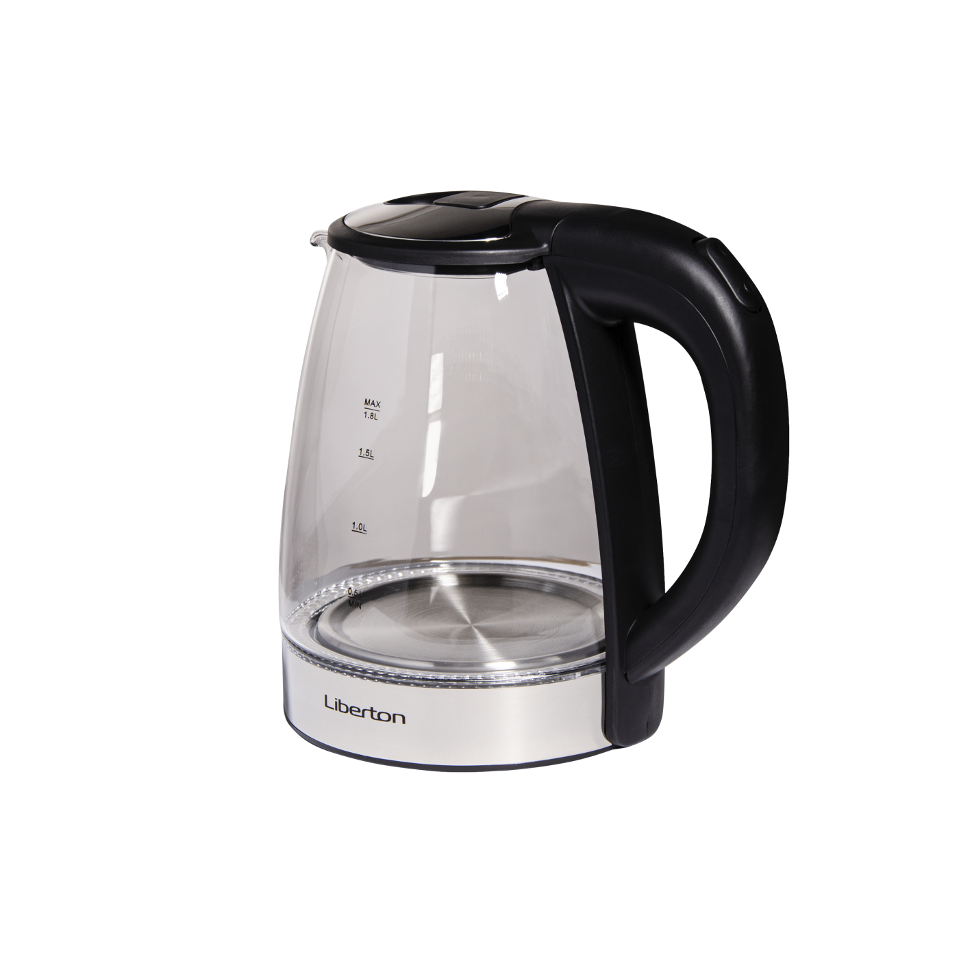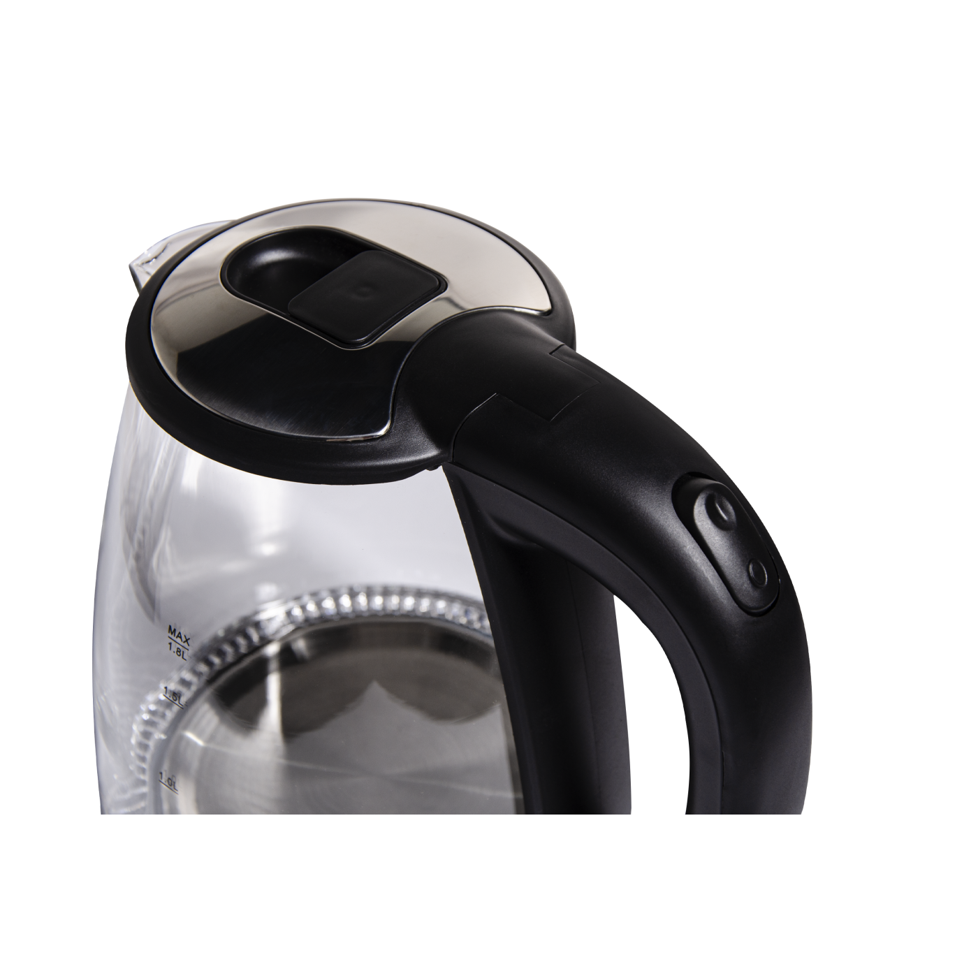 Потужність: 1500 Вт; Об'єм: 1,8 л; Нагрівальний елемент: диск з нержавіючої сталі; LED-підсвічування; Комплектація: поворотна база на 360 град., автовідключення, шкала рівня води, індикатор роботи, мідний кабель живлення; Розмір виробу: 21х14,2х22 см; Матеріал корпусу: скло; Колір: чорний+нерж.