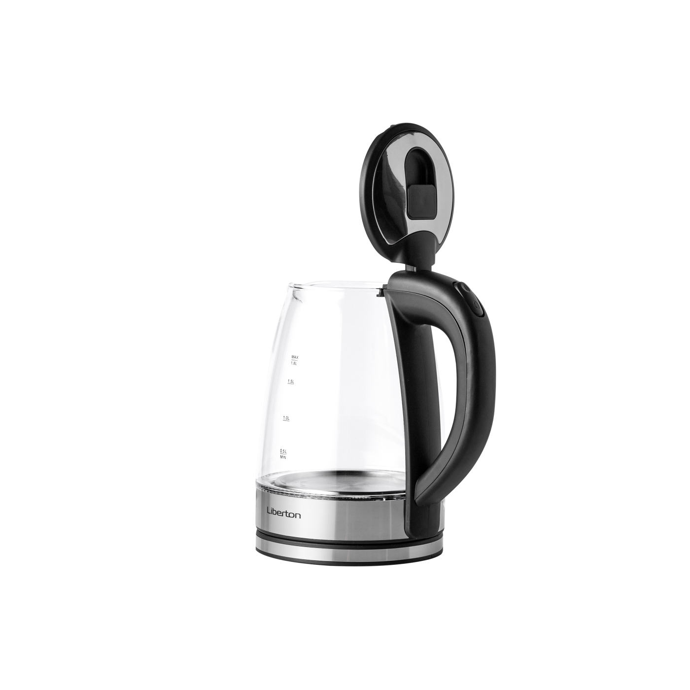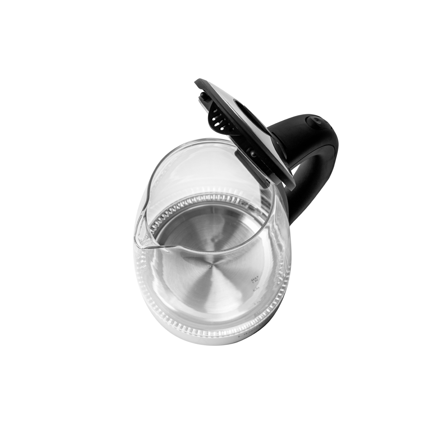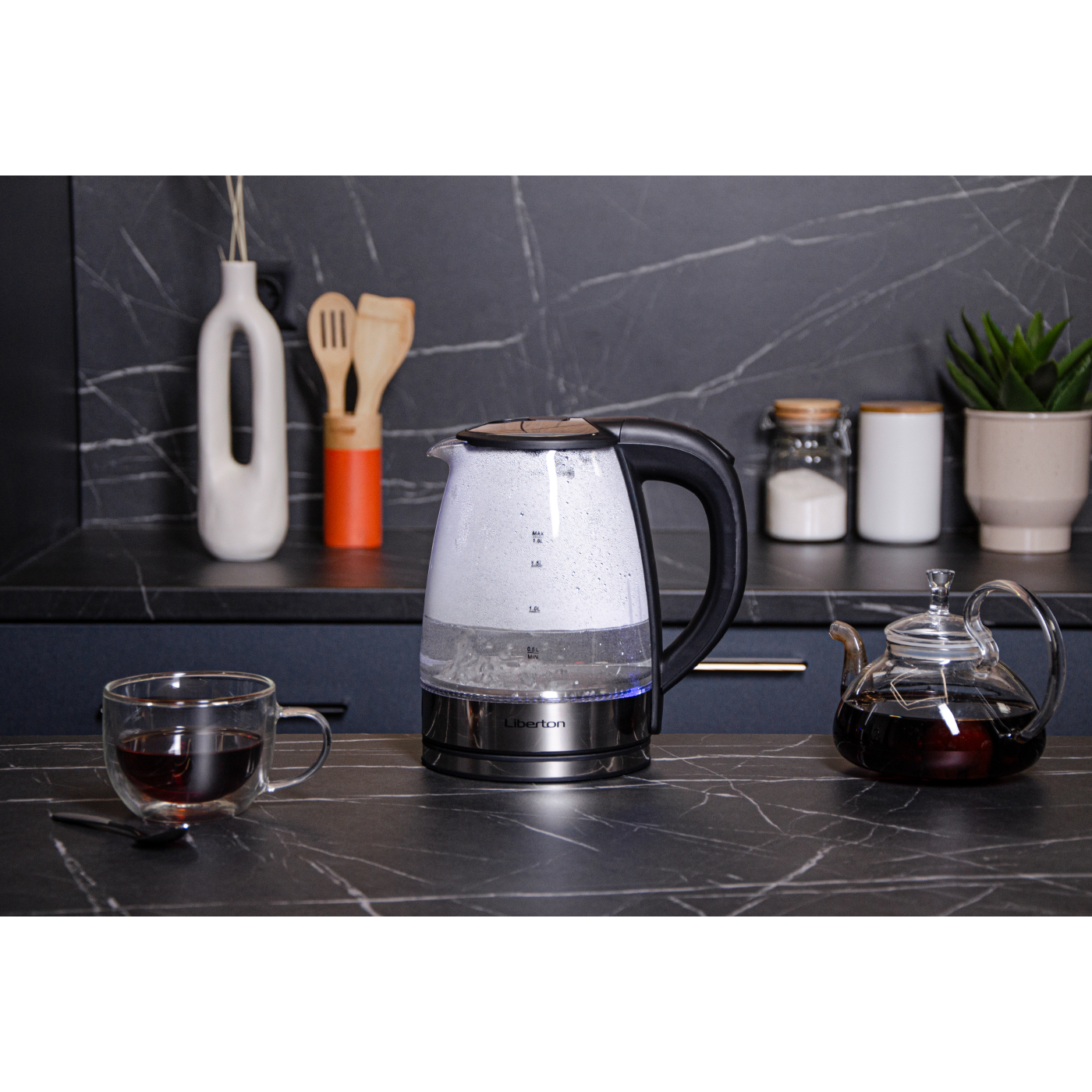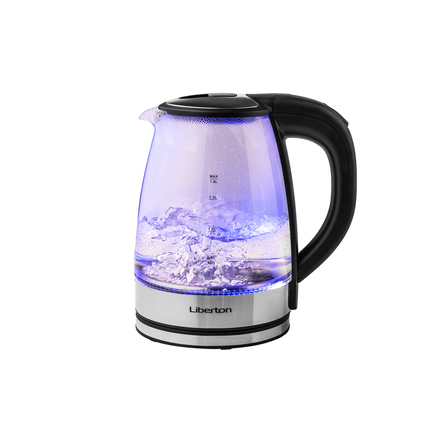Потужність: 1500 Вт; Об'єм: 1,8 л; Нагрівальний елемент: диск з нержавіючої сталі; LED-підсвічування; Комплектація: поворотна база на 360 град., автовідключення, шкала рівня води, індикатор роботи, мідний кабель живлення; Розмір виробу: 21х14,2х22 см; Матеріал корпусу: скло; Колір: чорний+нерж.