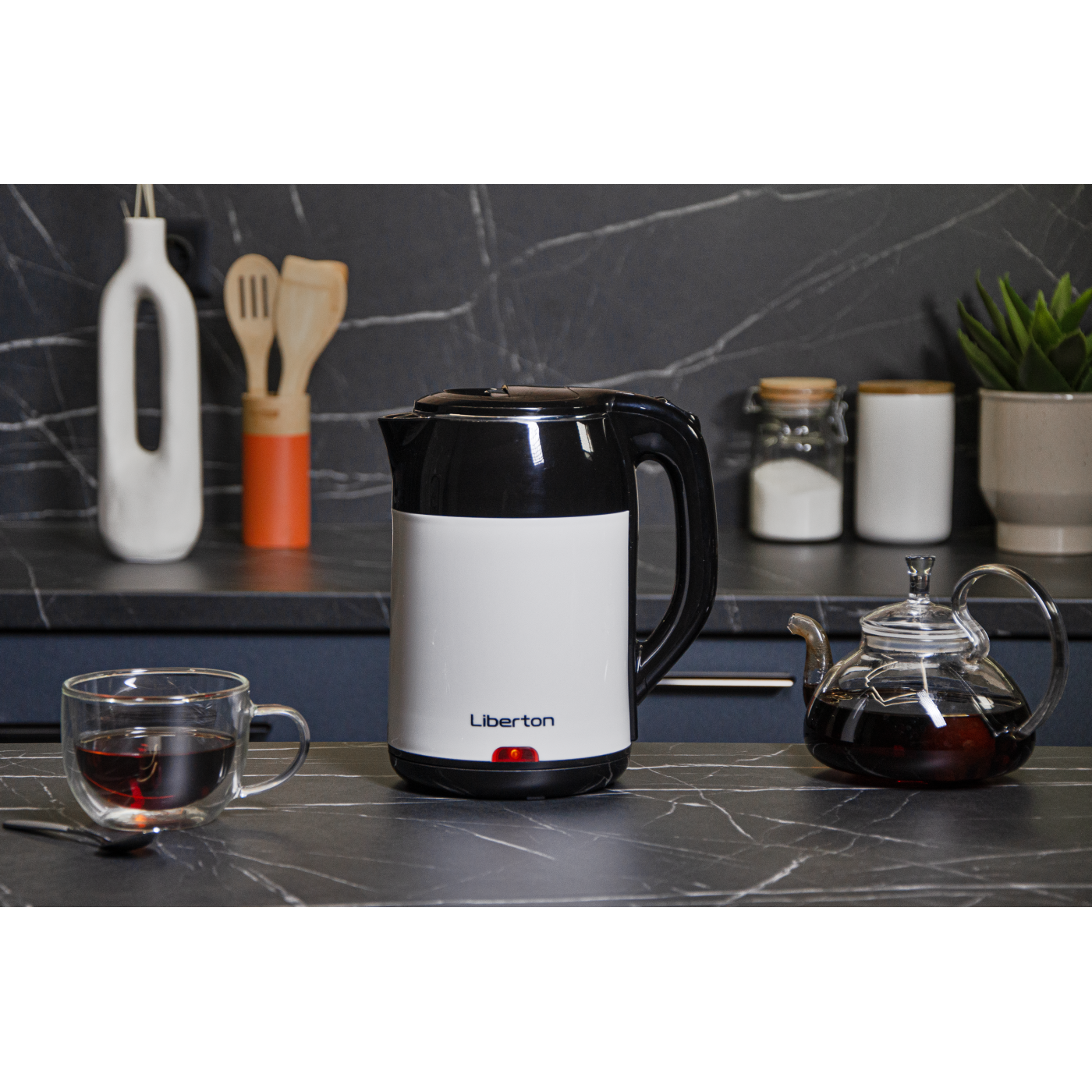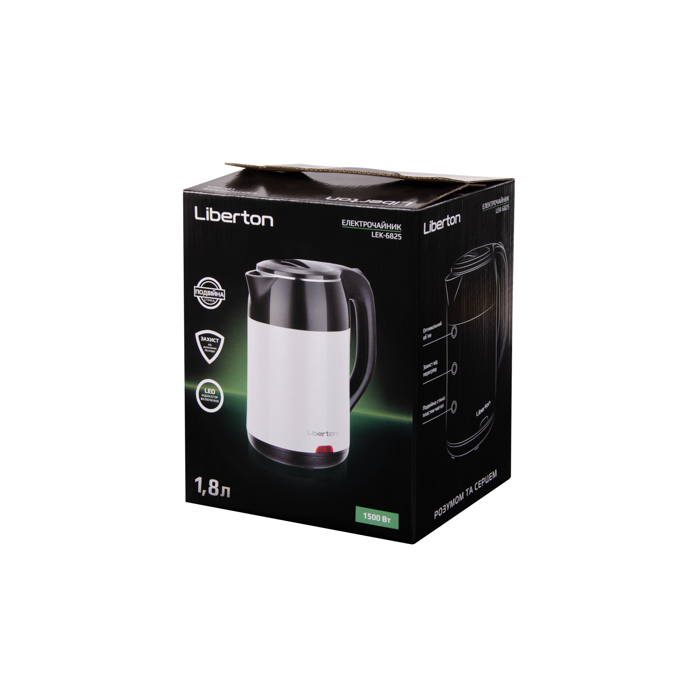 Потужність: 1500 Вт; Об'єм: 1,8 л; Нагрівальний елемент: диск з нержавіючої сталі; Комплектація: поворотна база на 360 град., автовідключення, внутрішня шкала рівня води, індикатор роботи; Розмір виробу: 20,8х15х24,3 см; Корпус: подвійна стінка (нержавіюча сталь+пластик); Колір: білий+чорний.