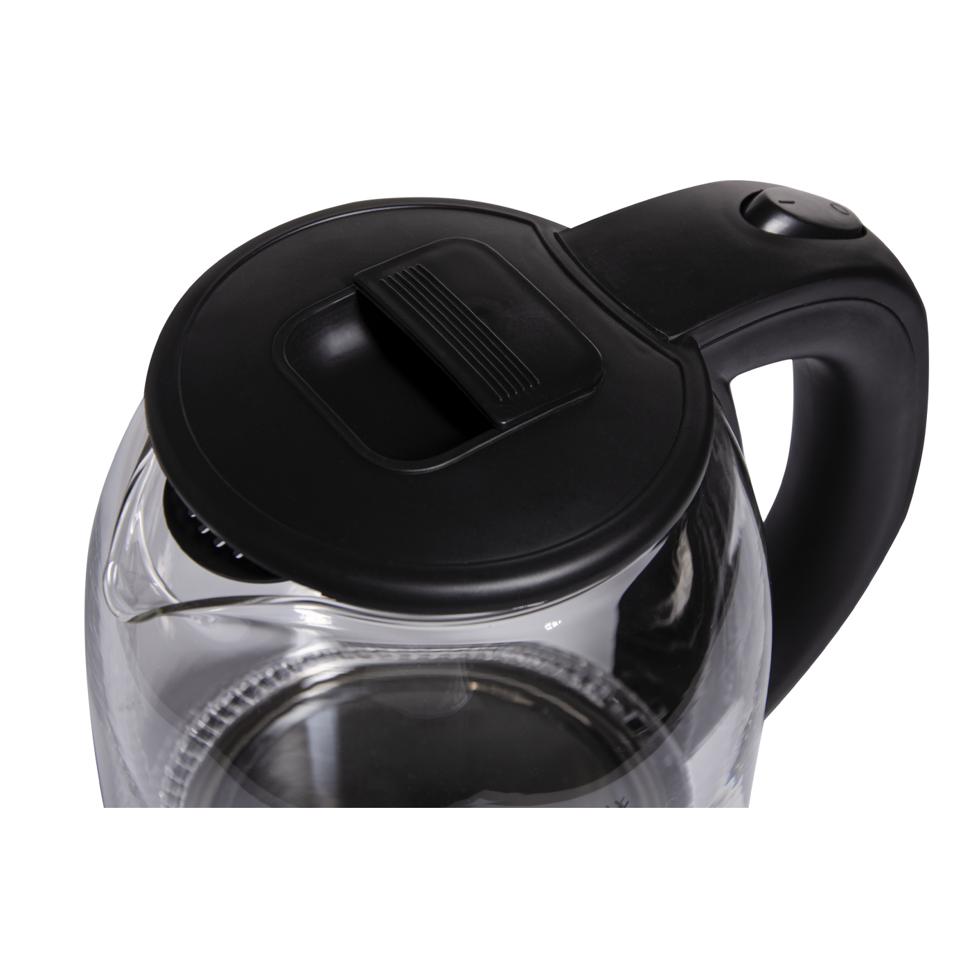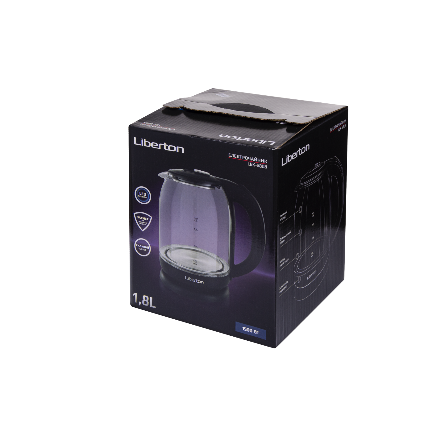 Потужність: 1500 Вт; Об'єм: 1,8 л; Нагрівальний елемент: диск з нержавіючої сталі; Комплектація: поворотна база на 360 град., автовідключення, шкала рівня води, індикатор роботи, мідний кабель живлення; Розмір виробу: 20,5х16,3х23 см; Матеріал корпусу: скло+пластик; Колір: чорний.