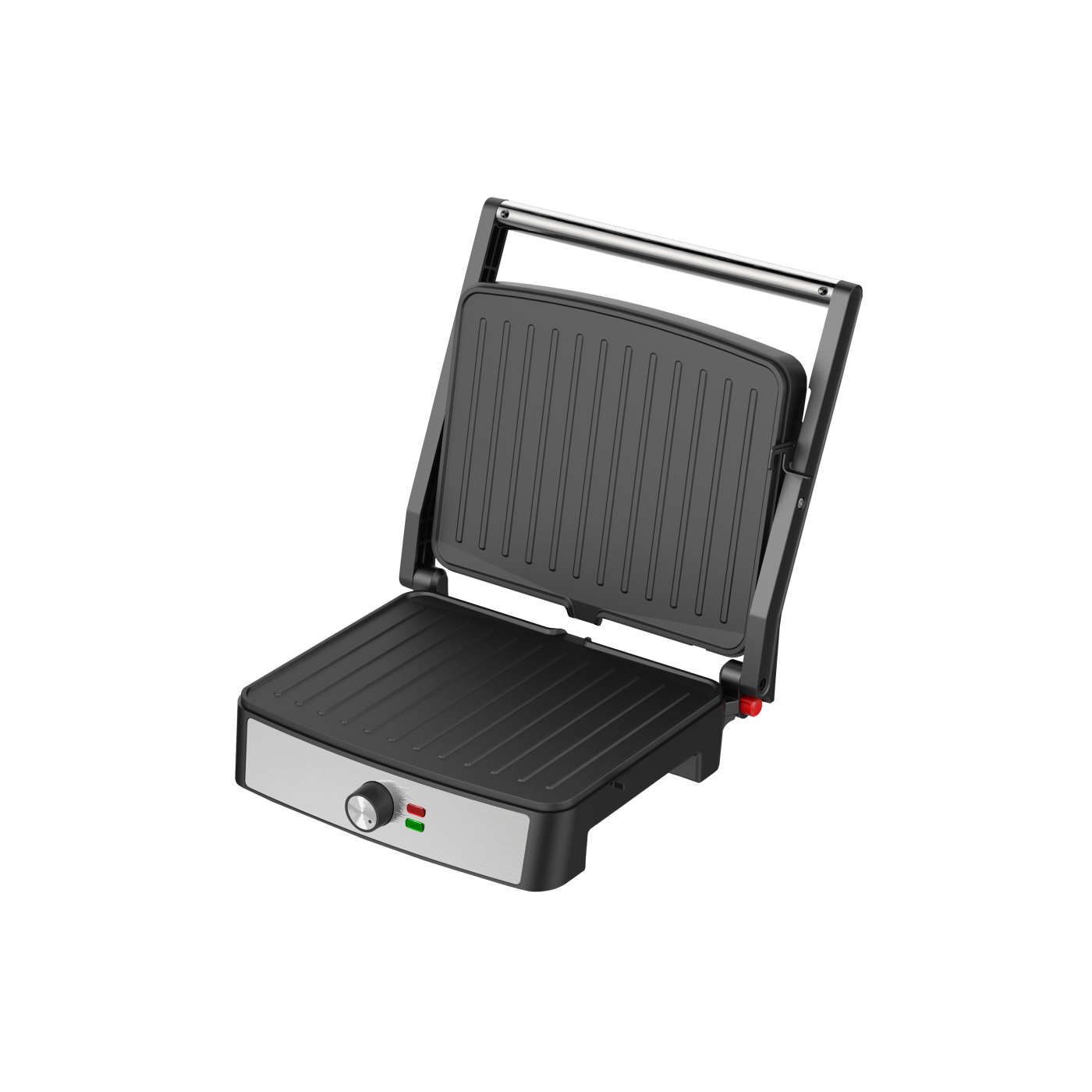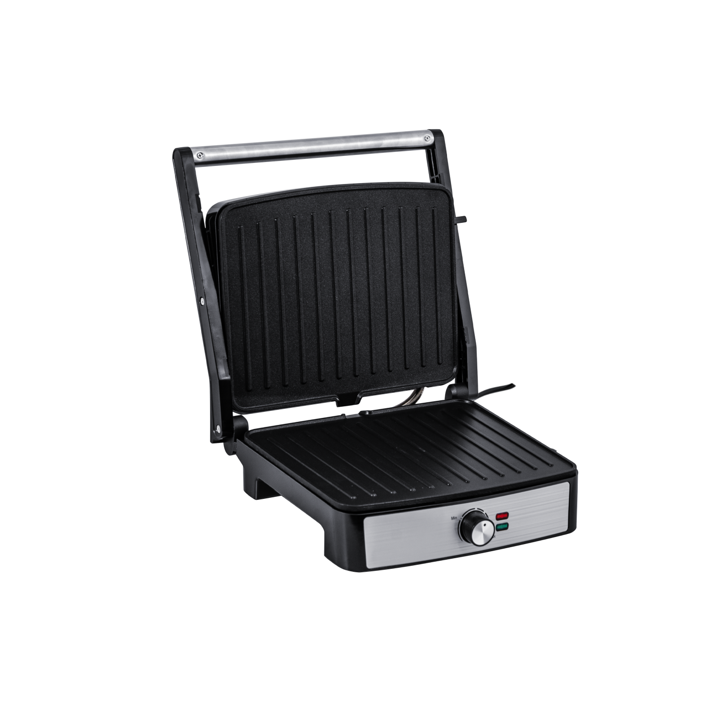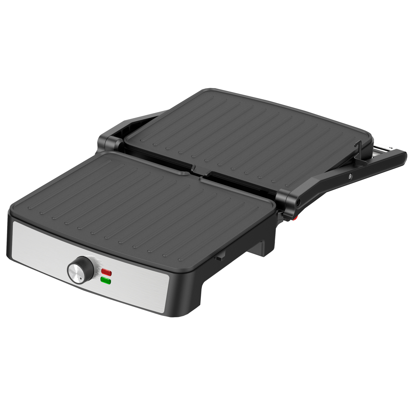 Потужність: 2200 Вт; Тип: контактний; Розмір робочої поверхні: 29х23 см; Індикатор живлення; Індикатор готовності їжі; Регулятор температури; Система блокування; Термоізольована ручка; Аксесуари: скребок для чищення, піддон для жиру; Покриття пластин: антипригарне; Відкривання: 180 град.; Матеріал корпусу: бакеліт+нержавіюча сталь; Розмір виробу: 32,8х13,3х32,3 см; Колір: чорний+нерж.