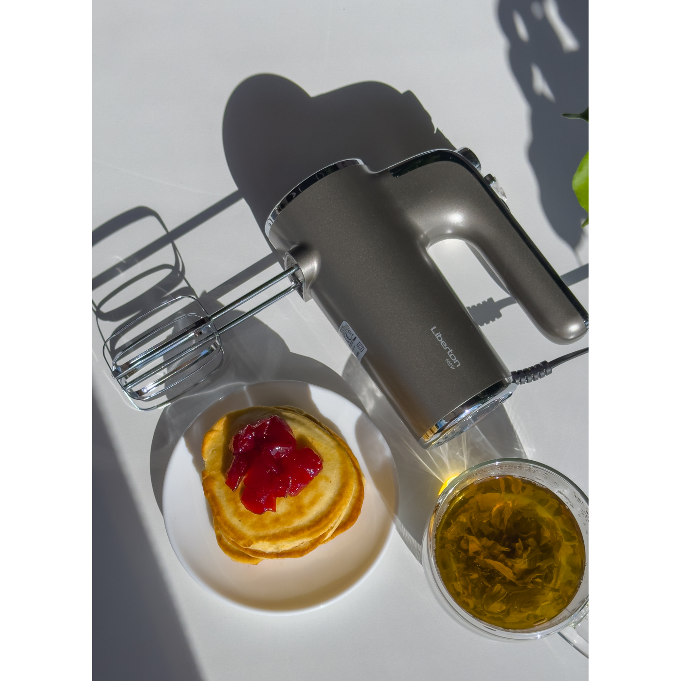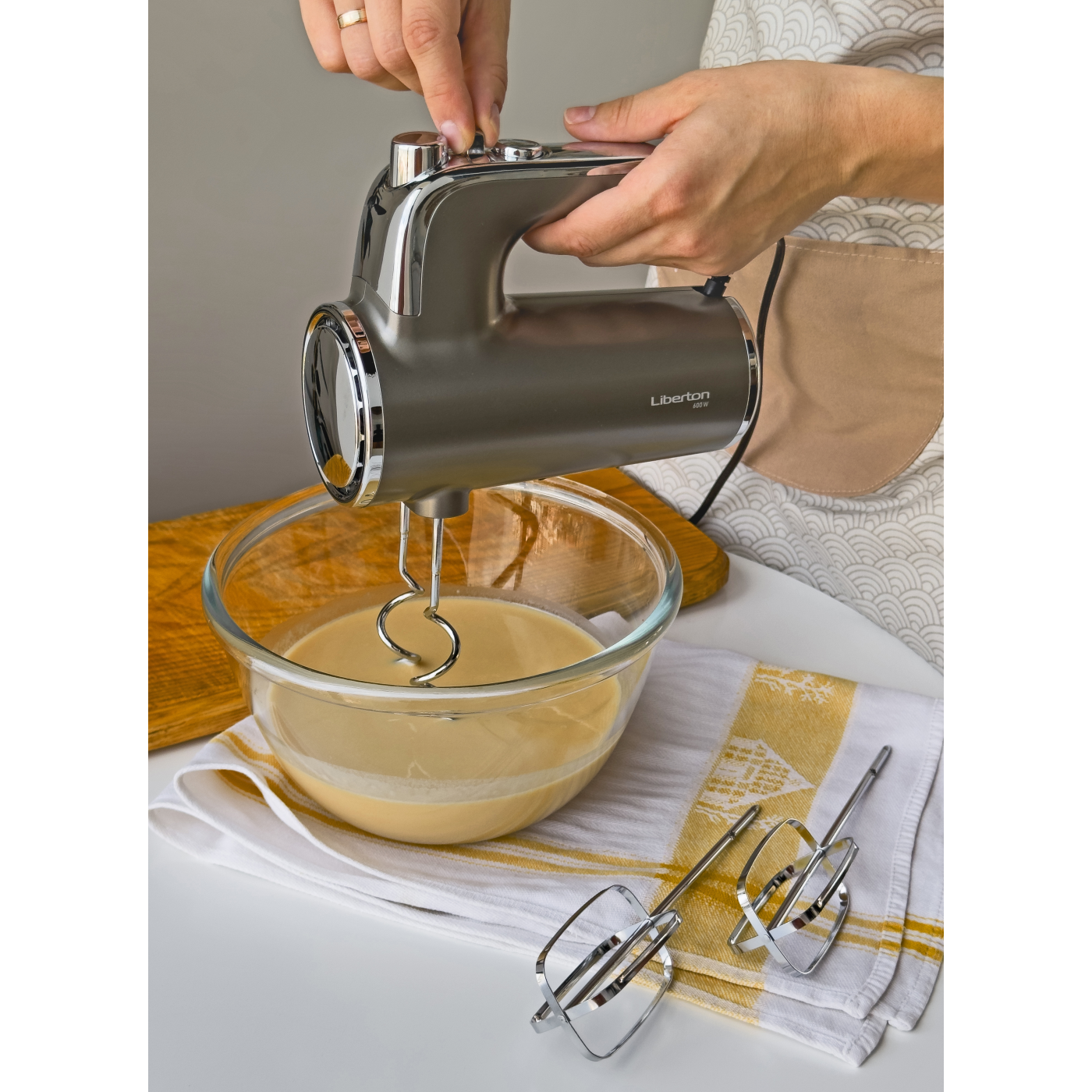 Потужність: 600 Вт; Кіл-ть швидкостей: 5; Режим "Турбо": так; Насадки: вінчики, гачки для тіста; Матеріал насадок: хромована сталь; Кнопка вилучення насадок: так; Матеріал корпусу: ABS пластик; Довжина шнура: 0,9 м; Розмір виробу: 19х8,3х15 см; Колір: сірий.