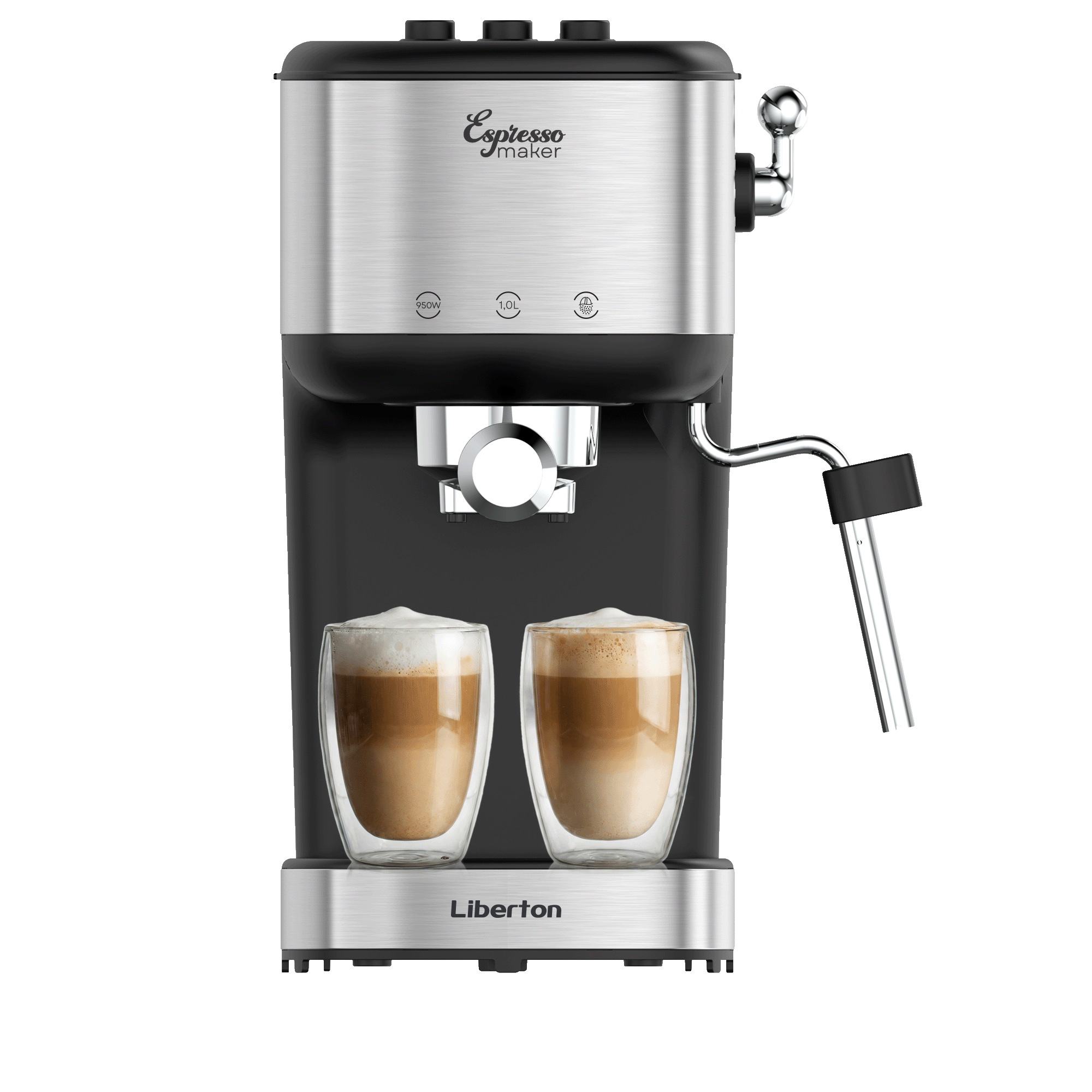 Потужність: 950 Вт; Тиск: 15 бар; Тип управління: механічне; Ємність резервуара для води: 1,0 л; Тип кави: мелена; Особливості: насадка панарелло, ручний капучинатор, гаряча вода, одночасне приготування двох чашок кави, підігрів чашок або кавника, знімний піддон для крапель, захист від перегріву, захист від надлишкового тиску, індикатор увімкнення, індикатор рівня води, мірна ложка-темпер; Матеріал корпусу: пластик+нержавіюча сталь; Розмір виробу,см: 14,5x29,6x29,7; Колір: чорний+срібло.