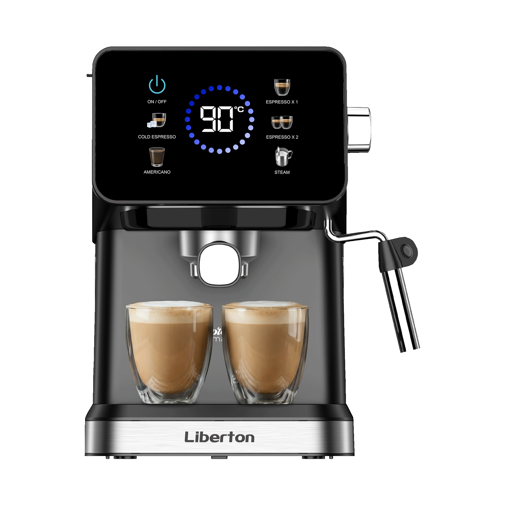Потужність: 1050 Вт; Тиск: 20 бар; Тип управління: сенсорне (напівавтомат); Ємність резервуара для води: 1,5 л; Тип кави: мелена; Особливості: захист від перегріву та надлишкового тиску, насадка панарелло, регулювання пари, подача гарячої води, приготування молочних напоїв, приготування 2 чашок еспресо одночасно, приготування американо, капучино та латте (в ручному режимі), холодний еспресо, підігрівання кавника, мірна ложка-темпер у комплекті; Матеріал корпусу: пластик+нержавіюча сталь; Розмір виробу (Ш×В×Г), см: 19,7×29,8x26,6; Колір: чорний+срібло.