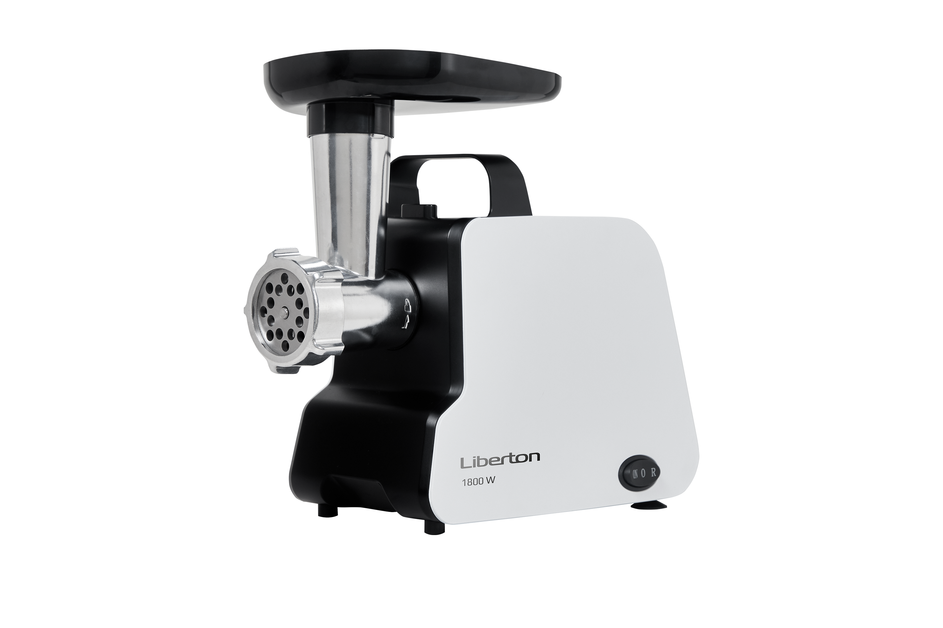 Потужність: 1800 Вт (при заклинюванні); Продуктивність: 1,2 кг/хв.; Функції: реверс, захист від перегріву; Аксесуари: 3 диска для помелу (3 мм/5 мм/7 мм), насадка для ковбас, насадка для кебе, штовхач, пластиковий лоток; Матеріал шнека: нержавіюча сталь; Матеріал корпусу: пластик; Розмір виробу: 28,8х30,5х14,2 см; Колір: білий+чорний.