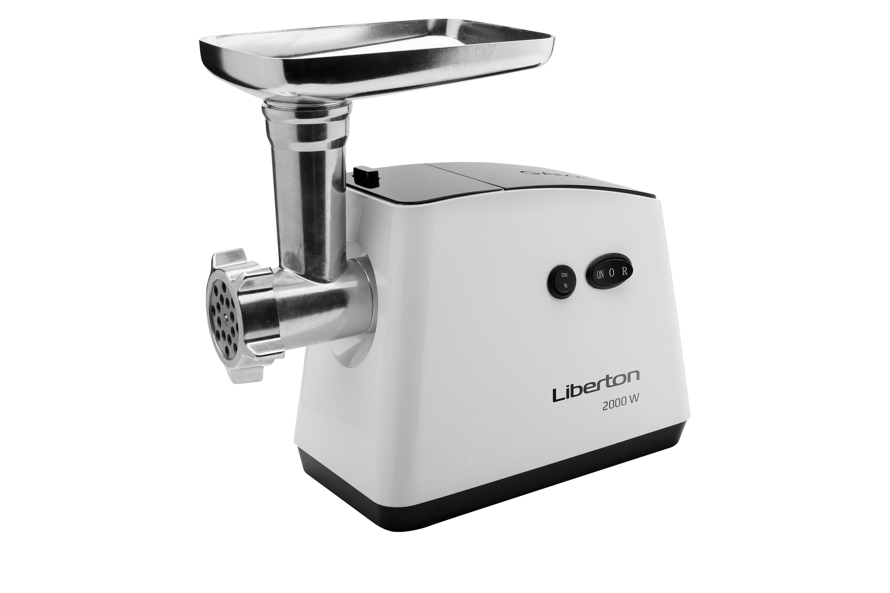 Потужність: 2000 Вт (при заклинюванні); Продуктивність: 1.4 кг/хв.; Функції: реверс, захист від перегріву; Аксесуари: 3 диска для помелу (3 мм/5 мм/7 мм), насадка для ковбас, насадка для кебе, соковитискач для томатів, бургер-прес, штовхач, металевий лоток; Матеріал шнека: нержавіюча сталь; Матеріал корпусу: пластик; Розмір виробу: 32х32.6х15.8 см; Колір: білий+чорний.
