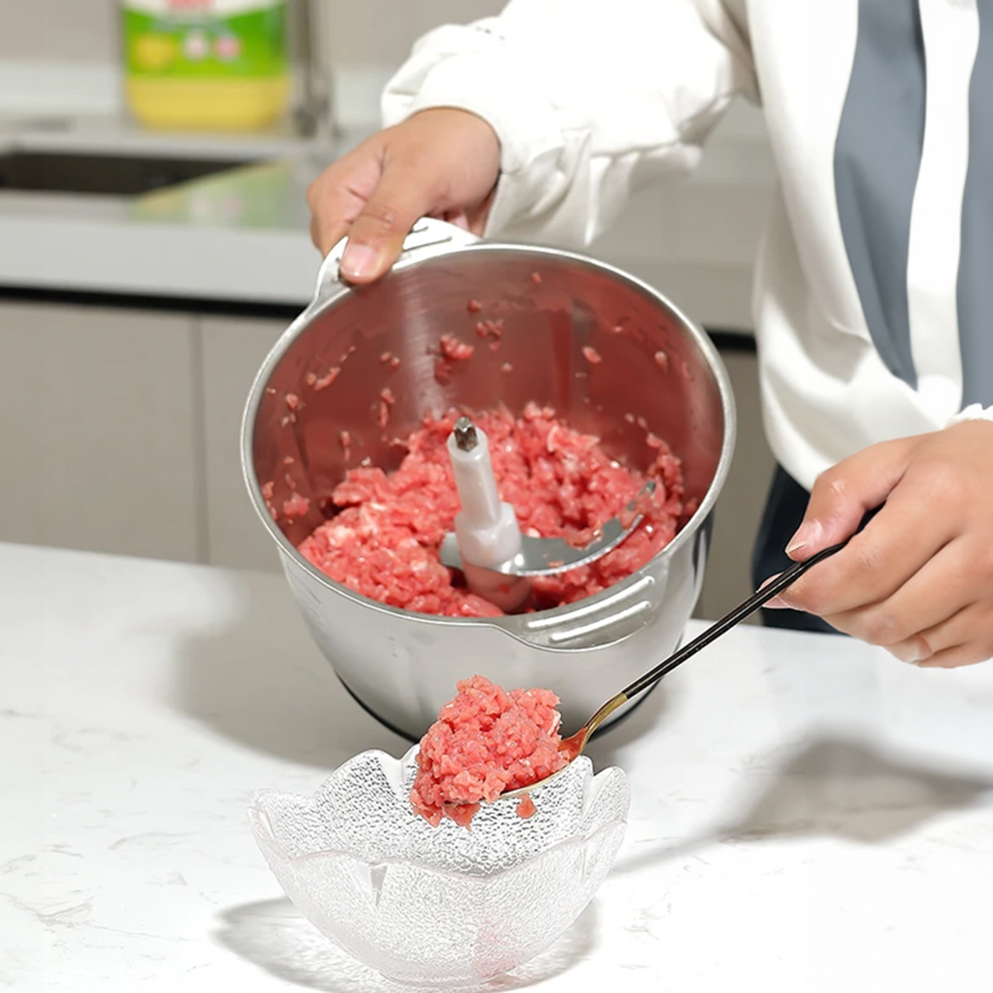 Потужність: 500 Вт; Тип: стаціонарний; Кількість швидкостей: 6; Об'єм чаші, л.: 3; Ніж: нержавіюча сталь; Матеріал корпусу: нерж.сталь+пластик; Особливості: електронний дисплей, 100% мідний двигун, режим TURBO, чаша з нержавіючої сталі SUS 304, антиковзаюче дно; Аксесуари: Лопатка для чищення; Розмір виробу, см: 25х29.