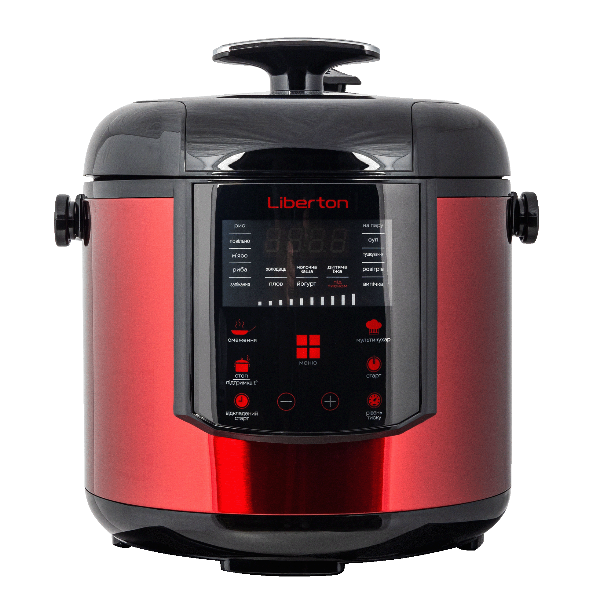 Потужність: 1000 Вт; Об'єм чаші: 6 л; Програми: 18; Дисплей: LED; Управління: сенсорне; Додаткові функції: підтримка температури, відстрочка старту, паровий клапан, регулювання робочого тиску, захист від перегріву; Комплектація: чаша (з антипригарним покриттям), контейнер-пароварка, лопатка, мірний стакан, книга рецептів; Розмір виробу: 35,5х31,5х31,5 см; Матеріал корпусу: нержавіюча сталь+пластик; Колір: чорний+червоний.