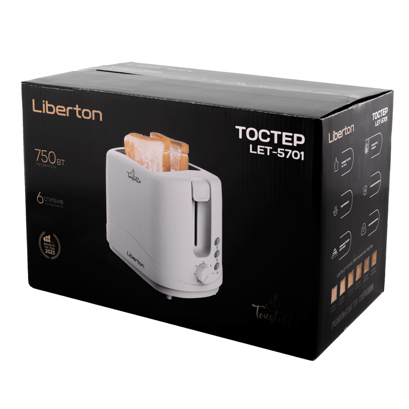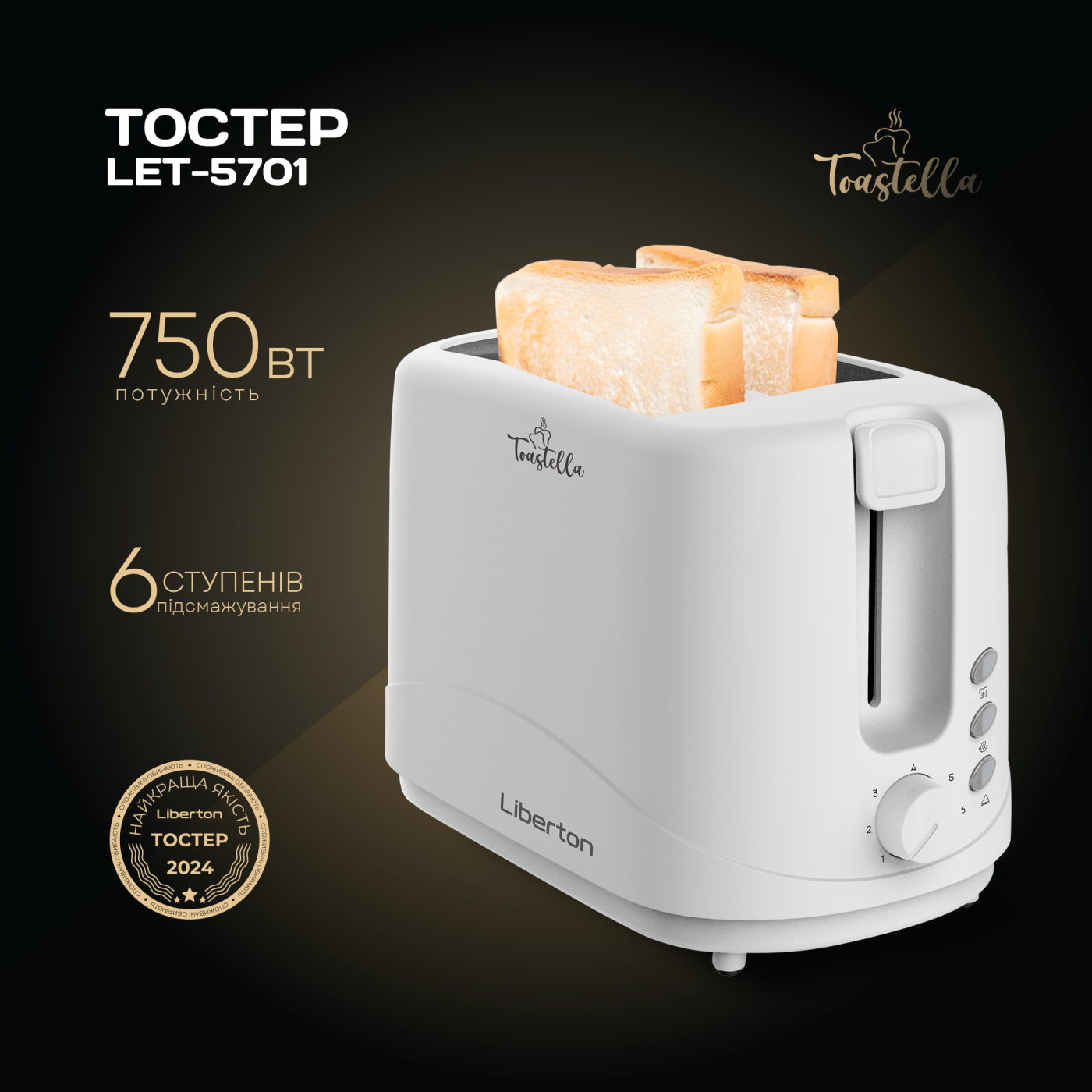 Потужність: 750 Вт; Кількість відділень: 2 шт; Кількість тостів: 2 шт; Кількість режимів приготування тостів: 6; З'ємний піддон для крихт: так; Функції: підігрівання, розморожування, автовимкнення; Матеріал корпусу: пластик; Розмір виробу: 25,8х17,8х15,0 см; Колір: білий.