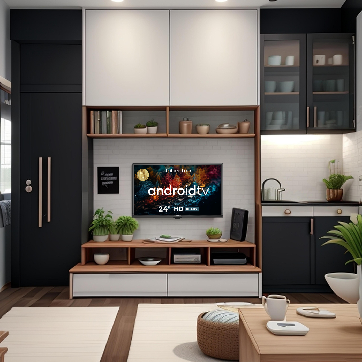 Діагональ: 24" (61 см); Роздільна здатність:1366x768 пикс. (HD ready); Операційна система: Офіційний Google TV 5.0; Оперативна пам'ять: 1 Гб; Внутрішня пам'ять: 8 Гб; Тюнер: DVB-T/C/T2; Кут огляду : 178 град.; Частота: 60 Гц; Входи: антенний (RF), Ethernet (RJ45), USB, HDMI, композитний A/V, коаксіальний; Виходи: навушники; Потужність звуку: 4 Вт; Голосовий пульт; кріплення VESA: 200х100 мм; Колір: чорний.