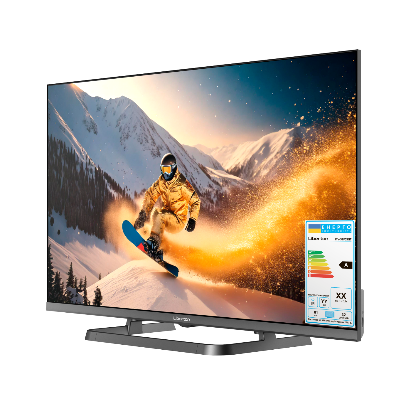 Діагональ: 32" (81 см); Корпус: безрамковий; Роздільна здатність: 1920х1080 пікс. (Full HD); Операційна система:Google TV (ОФІЦІЙНА); Технології: HDR 10, Dolby Audio, Dolby Digital Plus; Оперативна пам'ять: 1 Гб; Внутрішня пам'ять: 8 Гб; Тюнер: DVB-T/C/T2; Кут огляду : 170 град.; Частота: 60 Гц; Входи: антенний (RF), Ethernet (RJ45), USB, HDMI, композитний A/V; Виходи: навушники, оптичний; Потужність звуку: 16 Вт; Центральна ніжка; Кріплення VESA: 200х200 мм; Голосовий пульт; колір: сірий.
